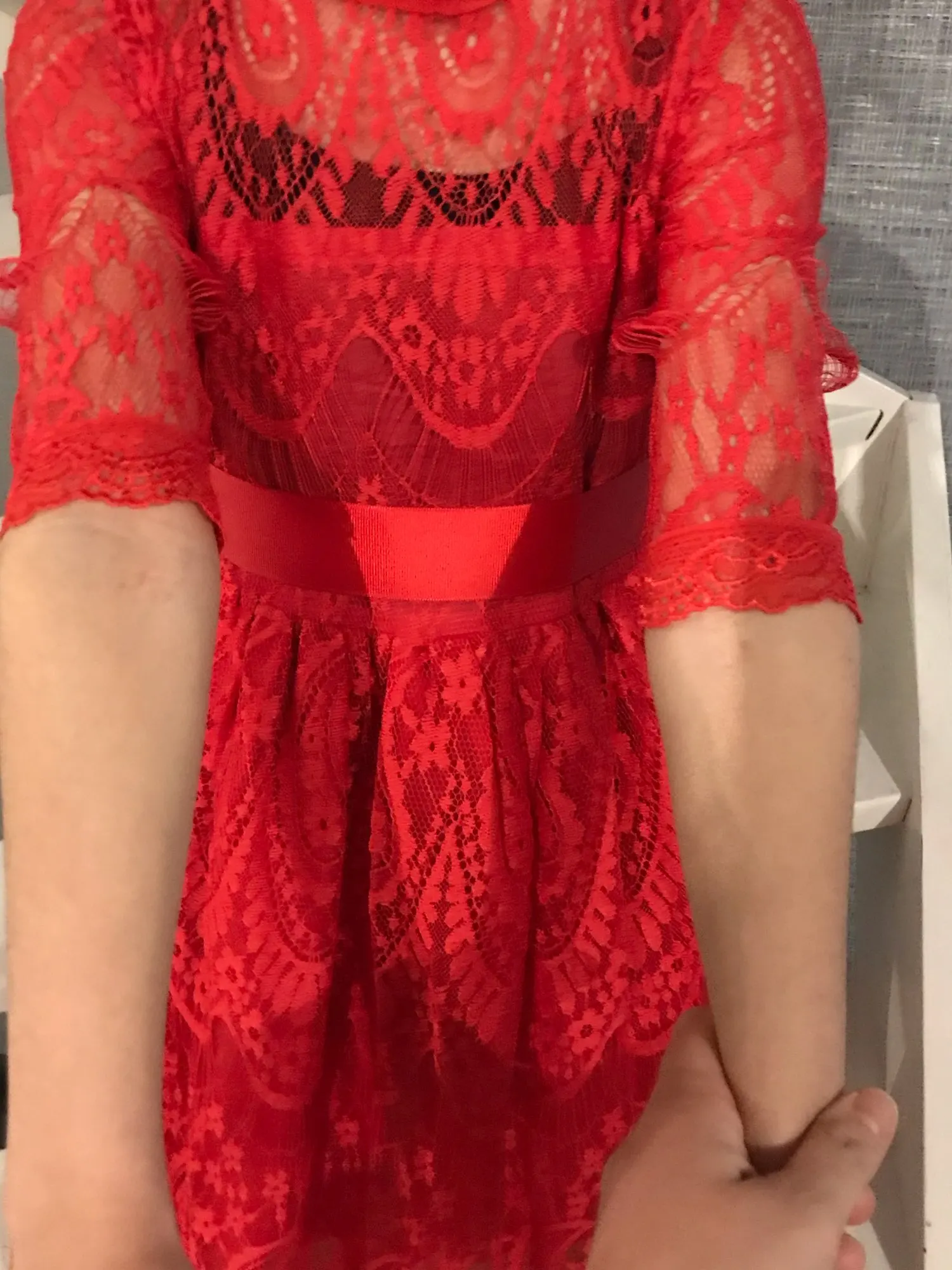 Красивое платье, нежное. Имитация кружева; Мягкая хлопковая подкладка. Быстрая доставка. Рекомендуем и благодарим продавцов :)