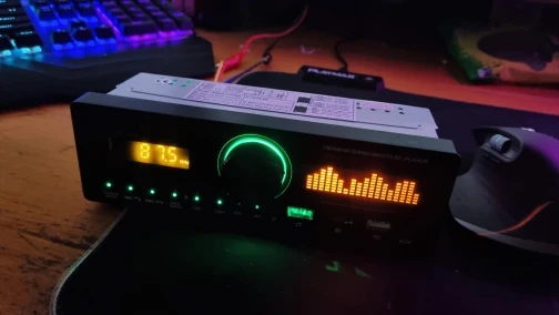 Выглядит хорошо. Как и ожидалось, дисплей эквалайзера поддельный, но он по-прежнему выглядит очень круто и имеет очень ретро-стиль. Хорошо подойдет моему старому Уту. Также делает как AM, так и FM, что является огромным бонусом.