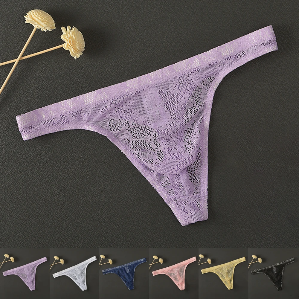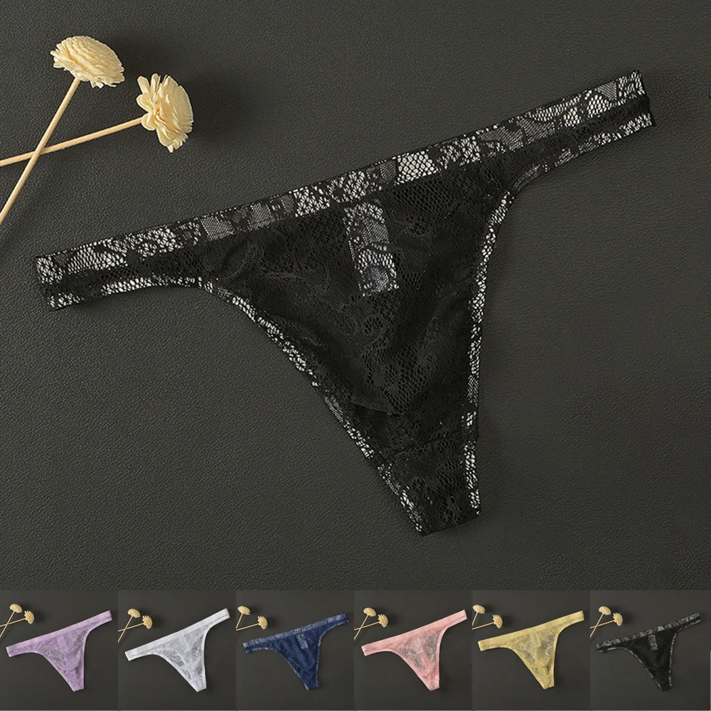 Мужские сексуальные трусы с приманкой, нижнее белье, кружевные прозрачные стринги с низкой посадкой
