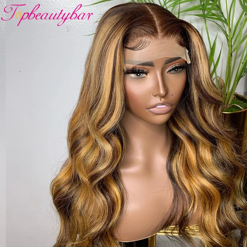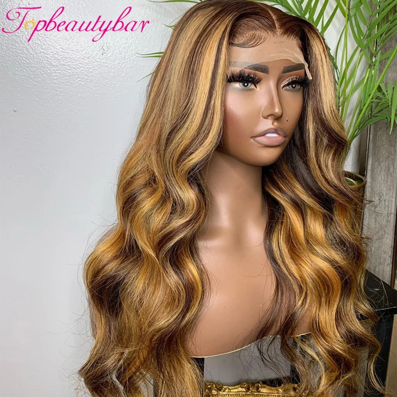 #427 хайлайтер светлый цвет 13X 4 кружевные передние парики волнистые Выделенные человеческие волосы парики для женщин предварительно выщипанные бразильские волосы Remy
