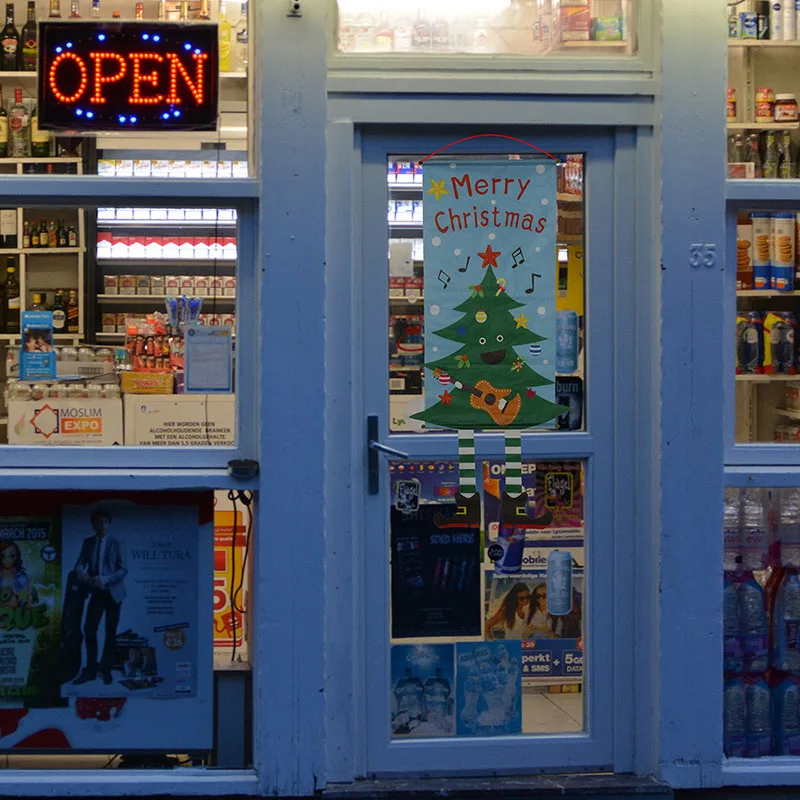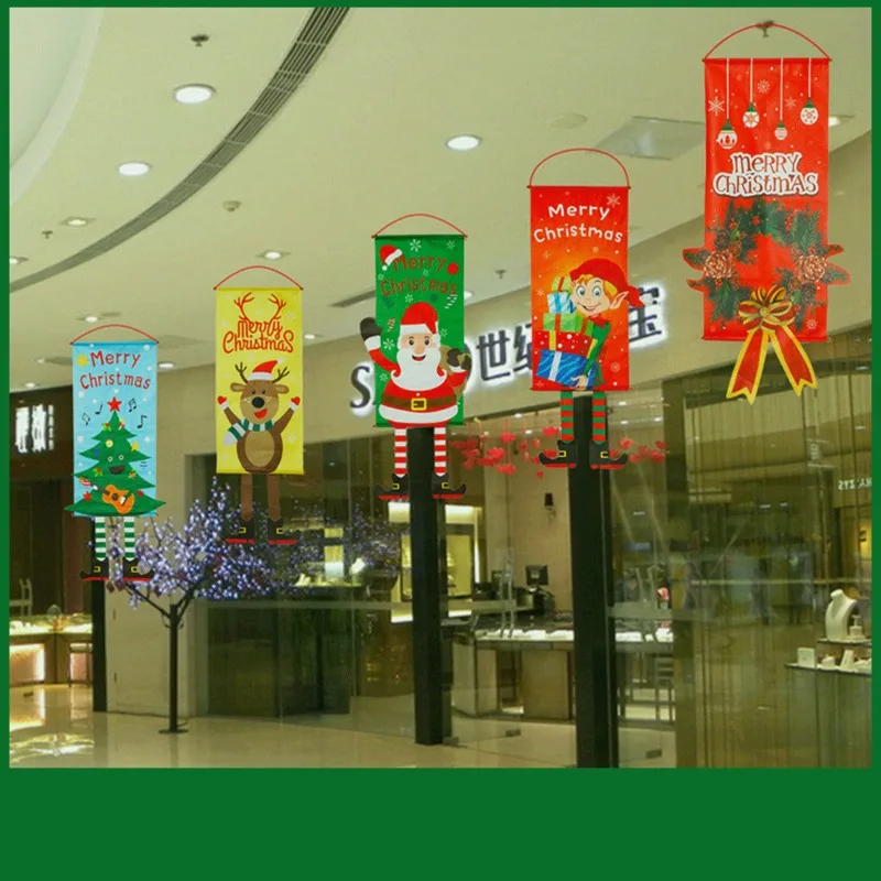 115*40 см Баннер с Санта-Клаусом, флаг, дверь, окно, Настенный деко...