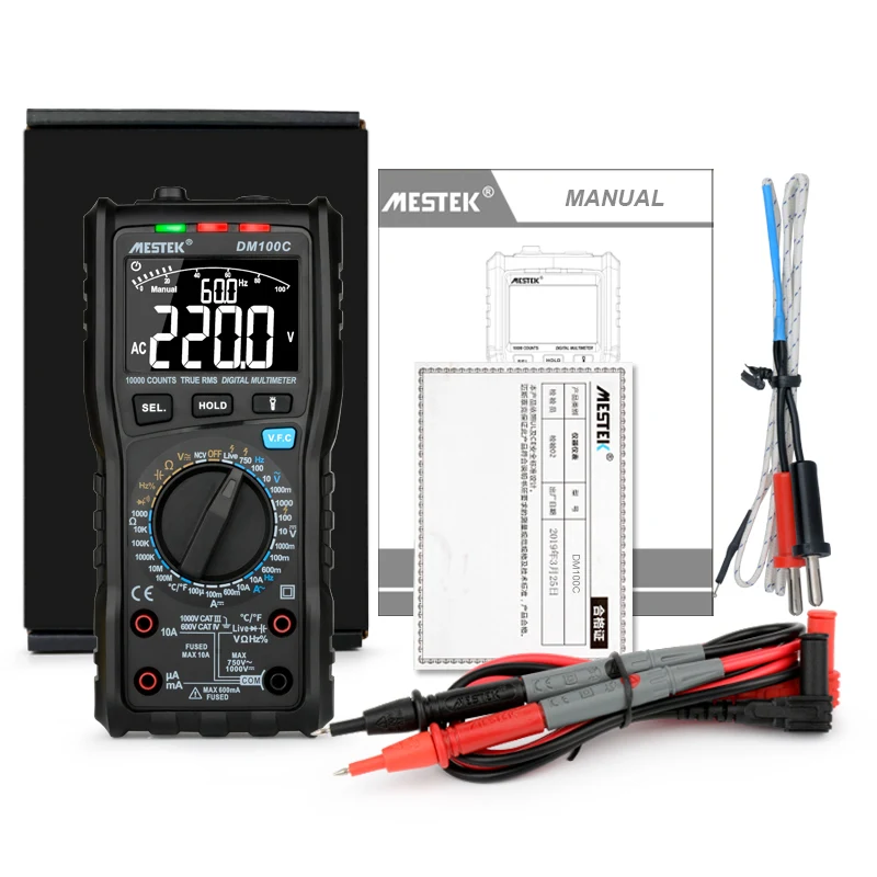 Цифровой мультиметр MESTEK DM100C, True-RMS, кнопка, 10000 отсчетов с аналоговой гистограммой, амперметр напряжения постоянного и переменного тока, Ток Ом, ручнойавтоматический