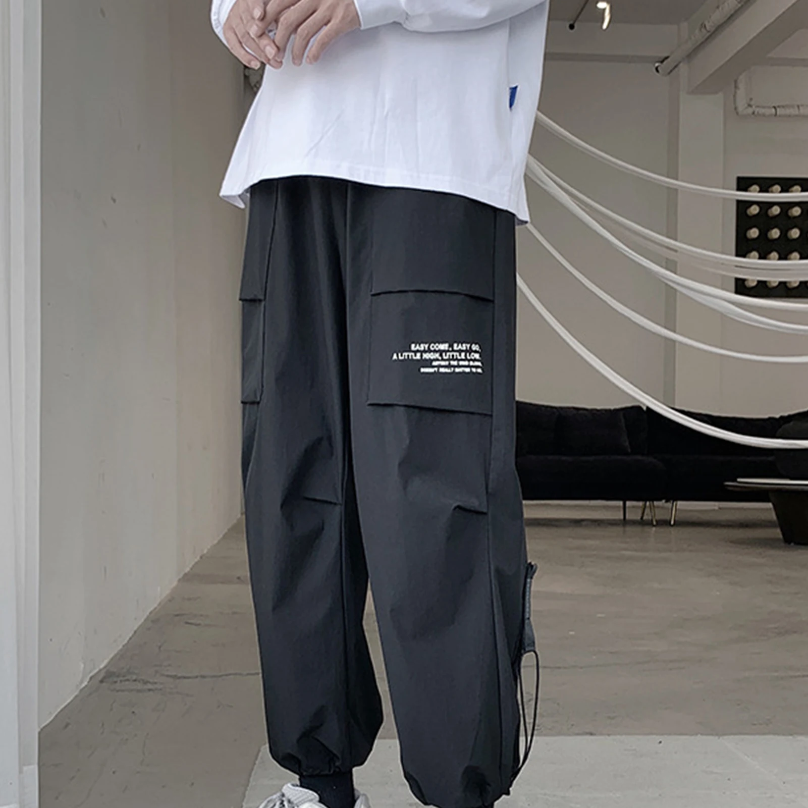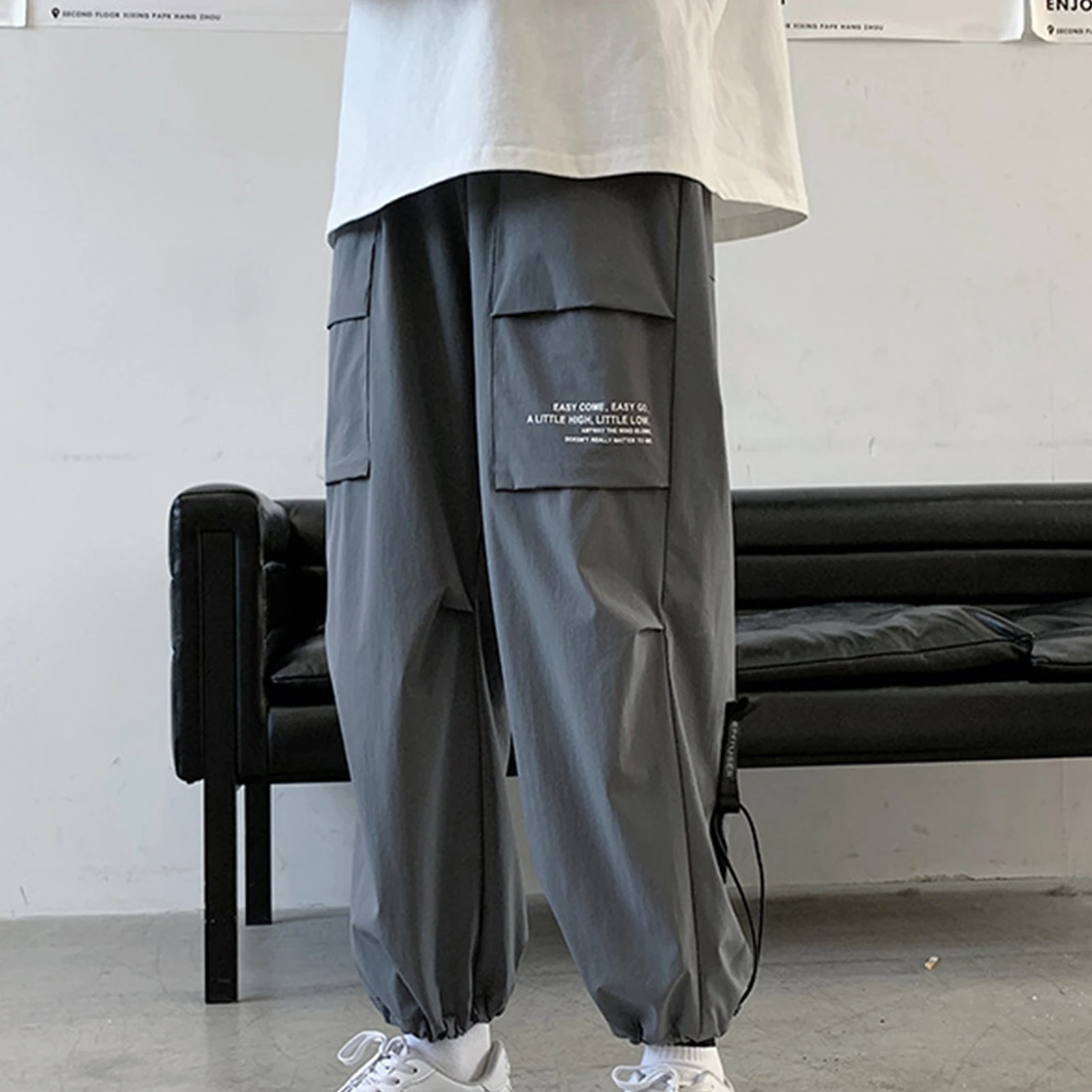 Мужские спортивные тонкие тренировочные брюки, Длинные свободные брюки с несколькими карманами на щиколотке