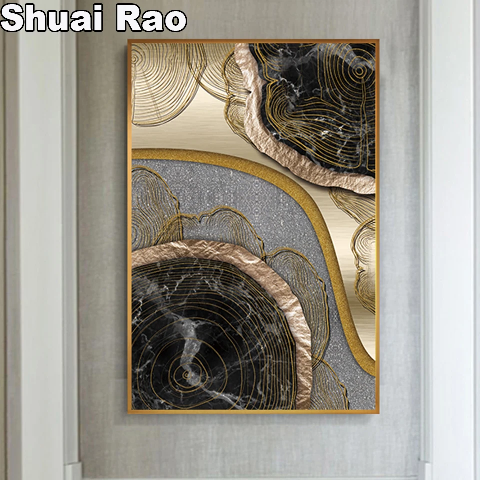 Абстрактное черное Золотое ежегодное кольцо, алмазная живопись, полное квадратное круглое украшение для гостиной, спальни, настенная художественная картина