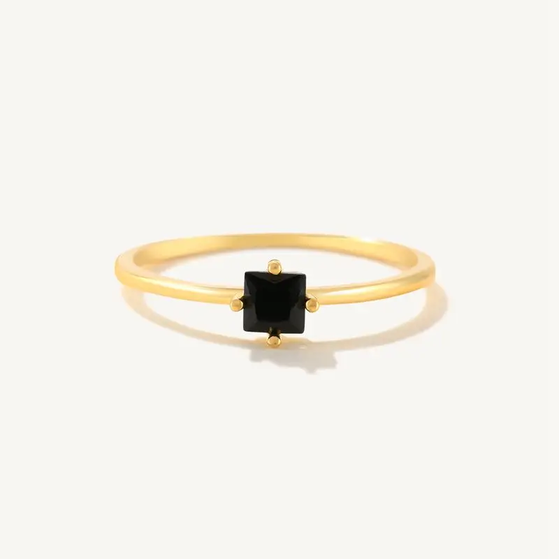 Женское кольцо из серебра 100% пробы, с квадратным черным бриллиантом