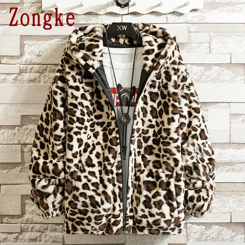 Мужская леопардовая куртка Zongke с капюшоном, 2021, Японская уличная одежда, зимняя повседневная куртка, Брендовое пальто, M-4XL