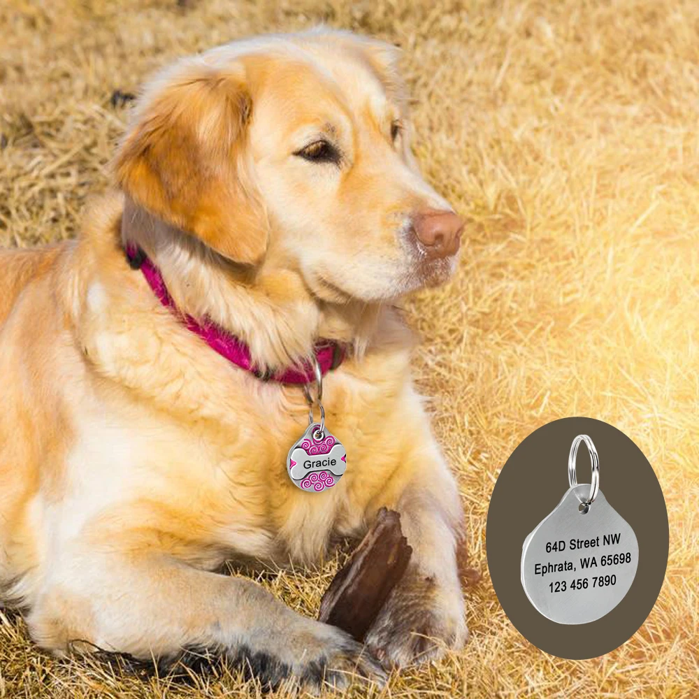 Персонализированные Именные Бирки Для домашних животных, гравировка, индивидуальные бирки для удостоверения личности собаки, аксессуары для ошейника, именная табличка, подвеска с защитой от потери