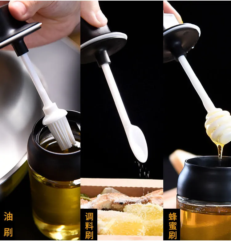Бутылка для приправ стеклянные контейнеры для хранения приправ банка для специй с ложка меда бутылка со щеткой для смазывания маслом коробка для специй