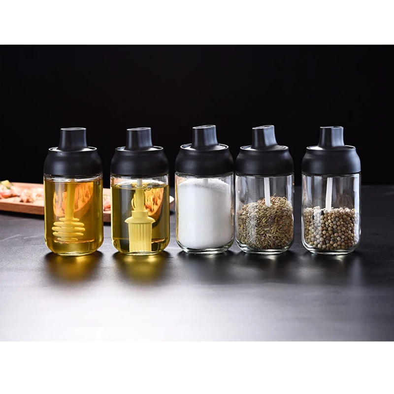 Стеклянная бутылка для приправ, стеклянные контейнеры для хранения приправ, горшок для приправ, банка для специй с ложкой, медовый горшок, бутылка для щеток для масла, коробка для специй