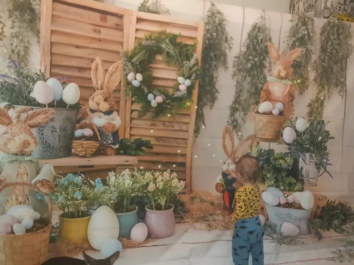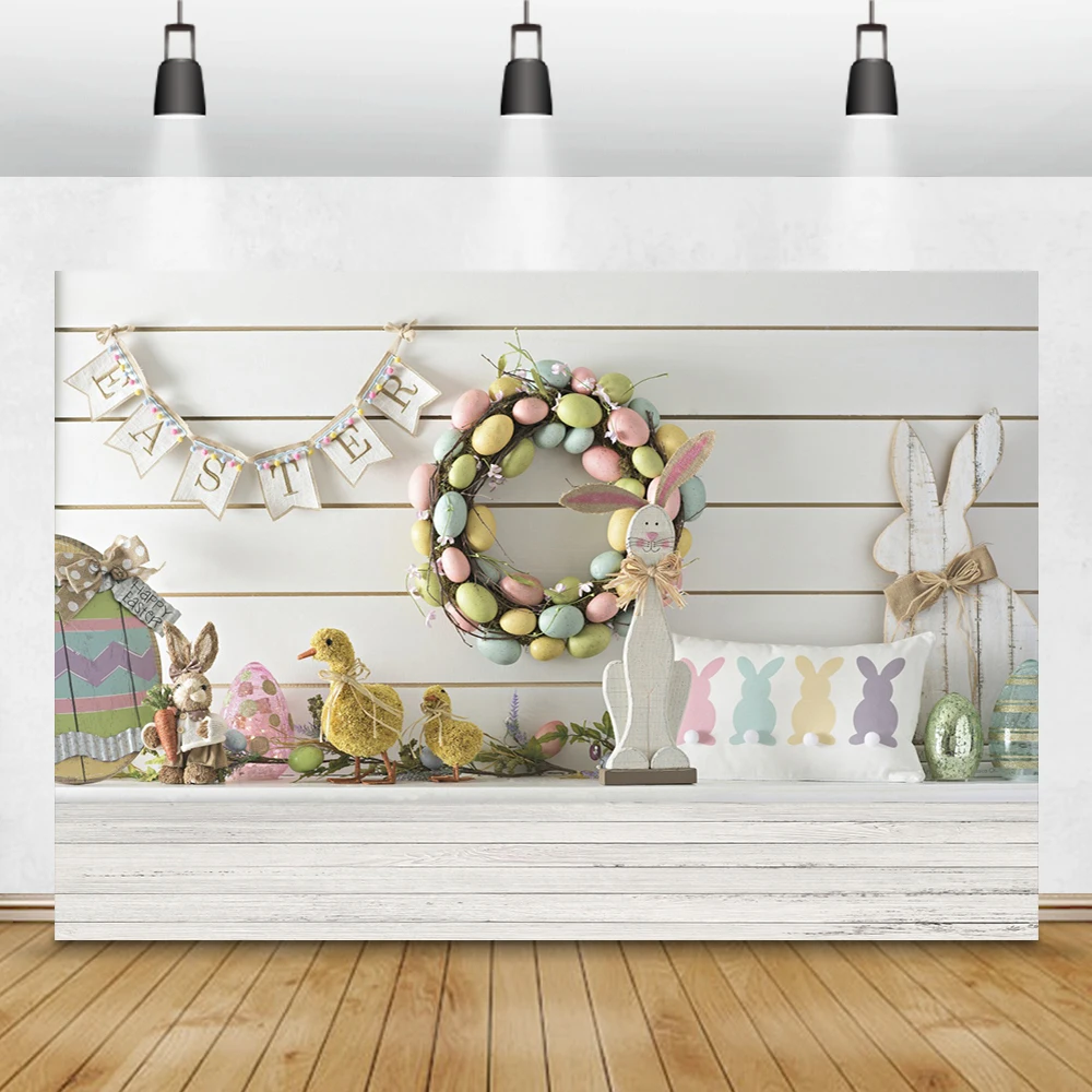 Пасхальный деревянный фон для фотосъемки с серыми досками кролик курица Яйцо цветок венок Новорожденный ребенок солневечерние НКА портрет фото фон