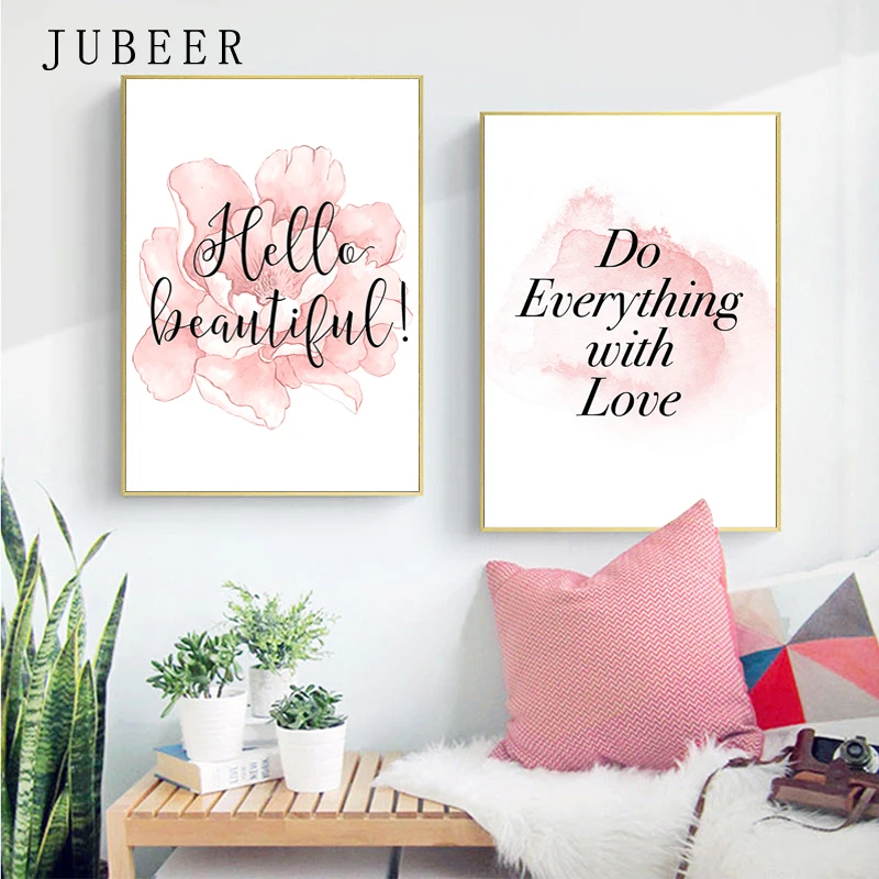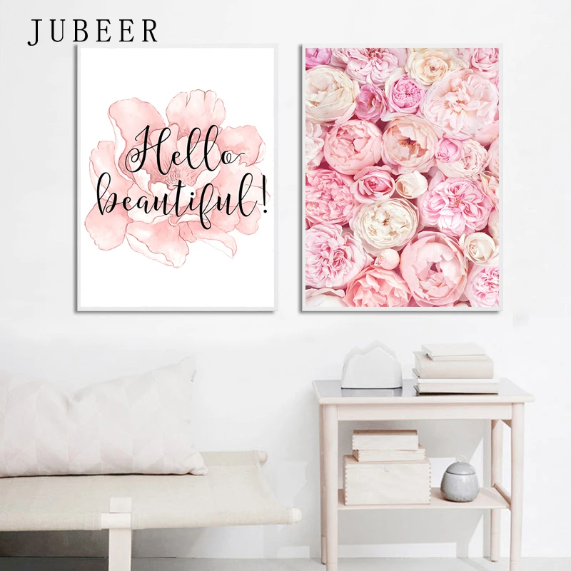 Настенные художественные настенные картины в скандинавском стиле с розовыми цветами, текстовые плакаты и принты, декор для спальни, пикры для домашнего декора