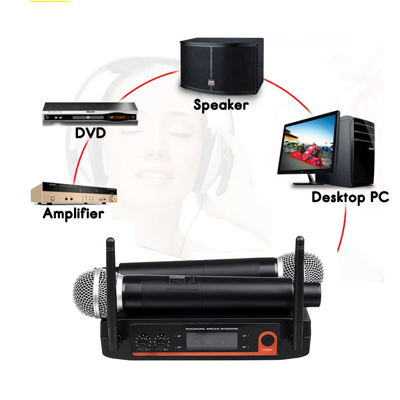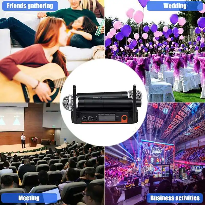 Беспроводная микрофонная система UHF, двойной ручной микрофон для к...