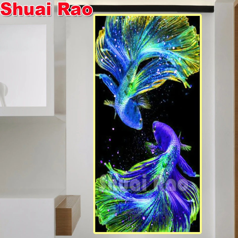 Абстрактная синяя Золотая рыбка 5d diy Алмазная картина полностью к...