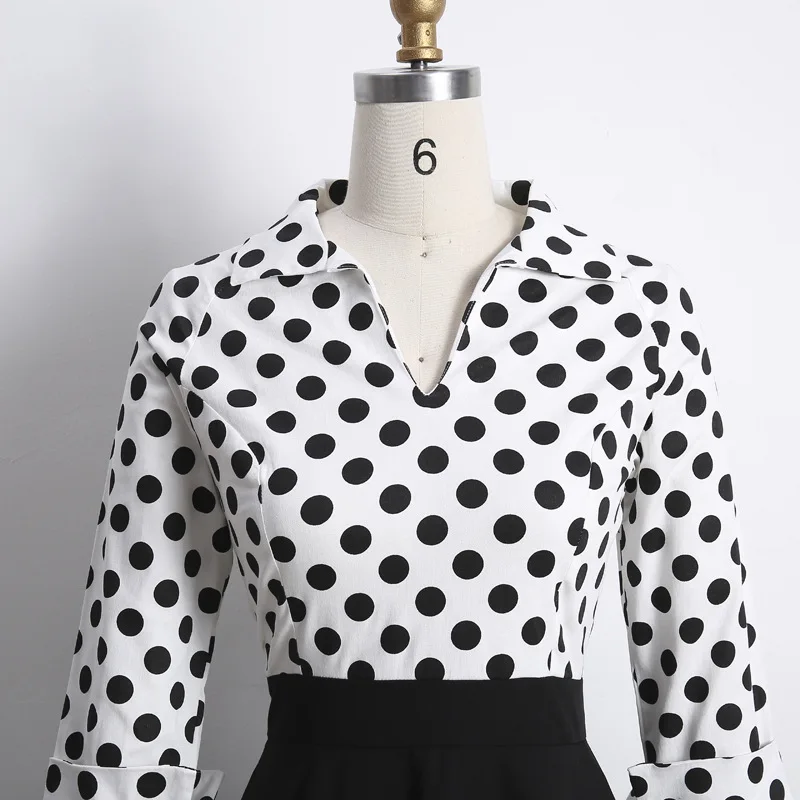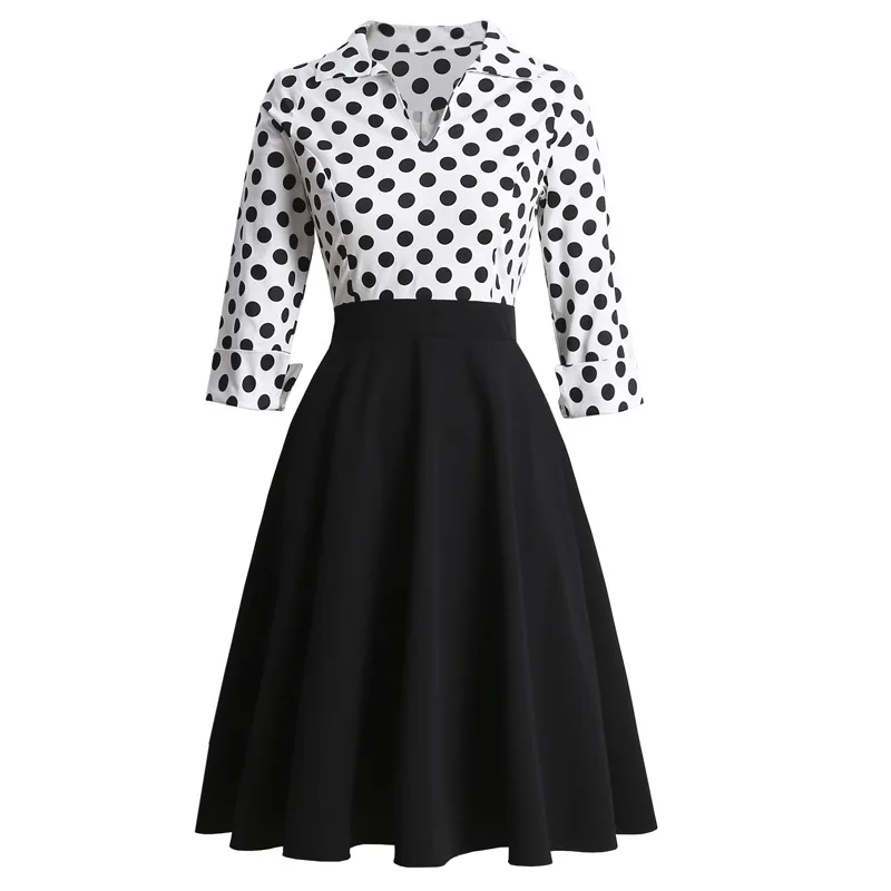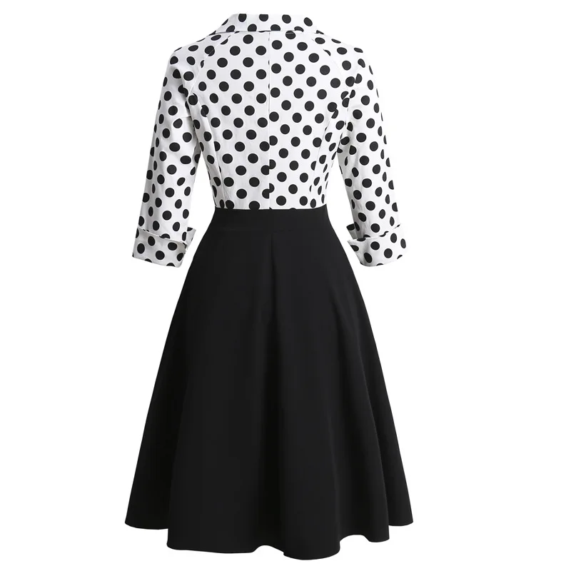 Зимнее хлопковое женское платье рокабилли в стиле ретро, 50s, 60s, белый, черный, в горошек, с принтом, сарафан в стиле пэчворк, рукав 34, на булавке, качели, Jurken