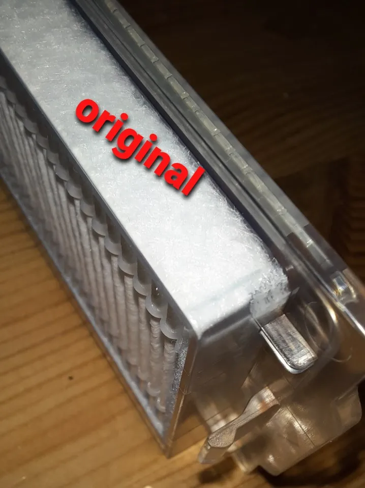 Доставляли почти месяц, пока не тестил, визуально, по материалу фильтра, один в один как родной, отличие в том, что фильтрующий элемент вынимается из пластиковой рамки. Насчёт возможности мыть пока сомнения.