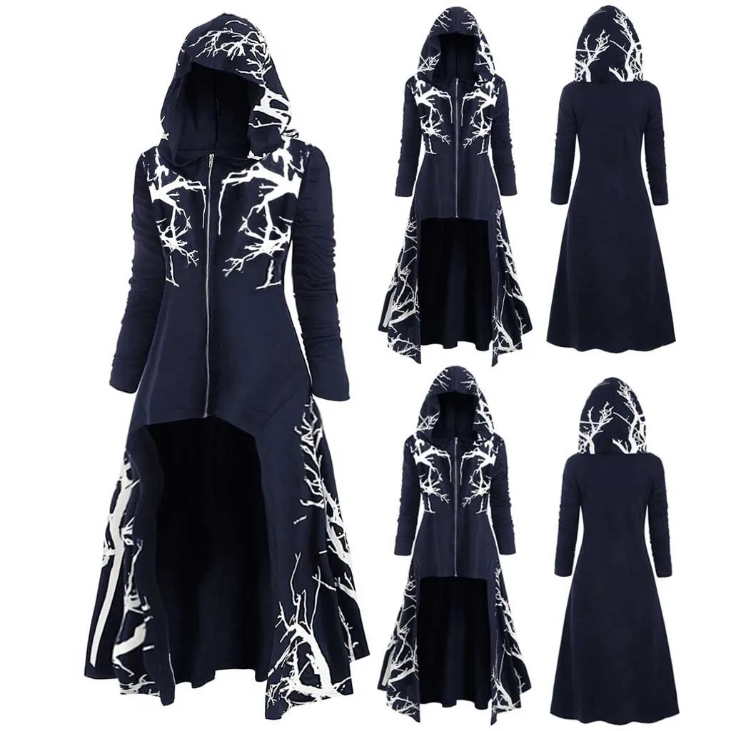Женское платье с капюшоном размера плюс с принтом дерева, высокое низкое пальто для Хэллоуина, блузка, топы