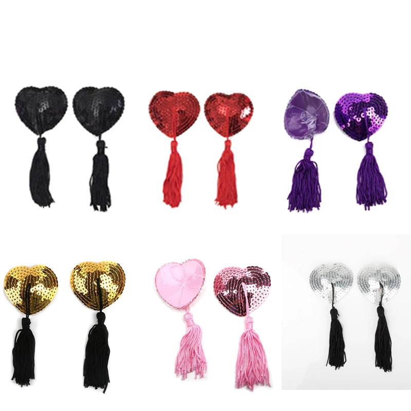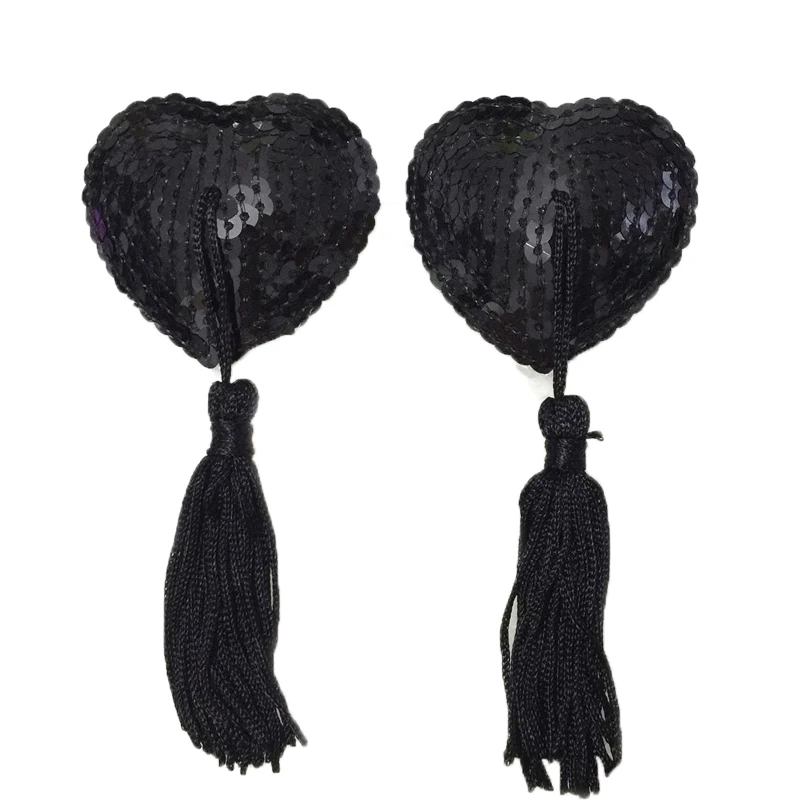 Сексуальное женское нижнее белье, 1 пара, Стикини наклейки, с блестками и кисточками, накладка на грудь, соски, в форме сердца, интимные изделия, наклейки на грудь