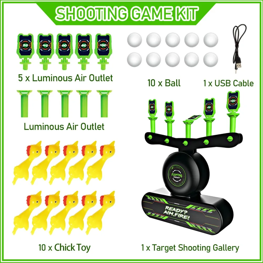 Игровой набор для стрельбы, светящаяся плавающая игрушки для тренировок с мишенью + 10 плавающих шариков + Дротика из пены + шарики, игрушки для цыплят, подарок для детей