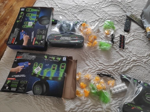 Это довольно хорошо и развлекательно. Коробка прибыла довольно дробленая, но без повреждения продукта. Писто работает очень хорошо, хотя было бы признательно, если бы они были чем-то большим. Иногда Воздушная система немного мала, и некоторые шарики падают, потому что они не из всех концов, они из полиса. Плавкие предметы хорошо работают. Хорошая идея, которая может быть использована для подключения к току вместо только батарей. Слишком короткий шнур питания. Забавно на некоторое время.