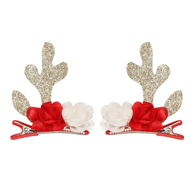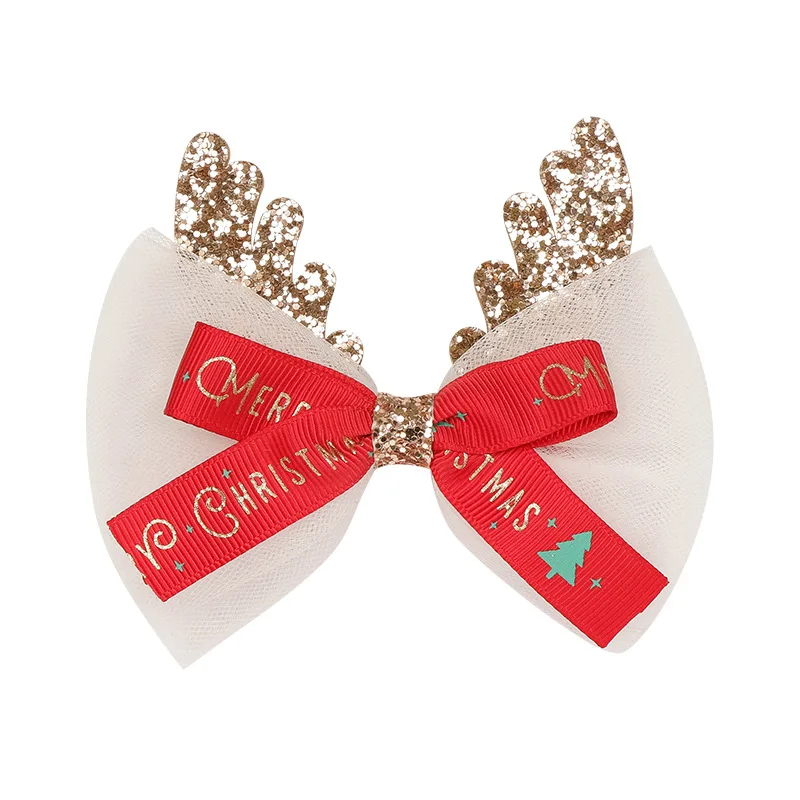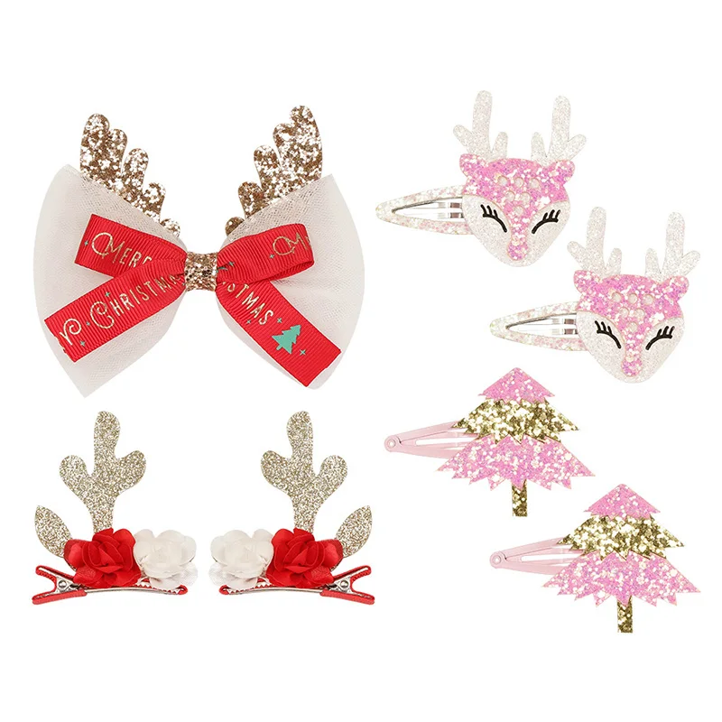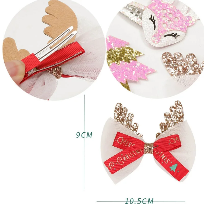 Рождественская заколка для волос с оленьими рогами, зажим с блестками, дерево, банты для волос, милые заколки для волос для девочек, праздничные боковые заколки, аксессуары для волос