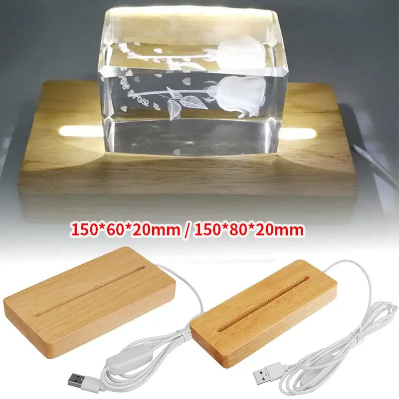 Деревянная белаятеплая светодиодная подсветка ручной работы из смолы, основа дисплея из хрустального стекла, художественное украшение из смолы, деревянная подставка для ночного освещения, подставка для рукоделия
