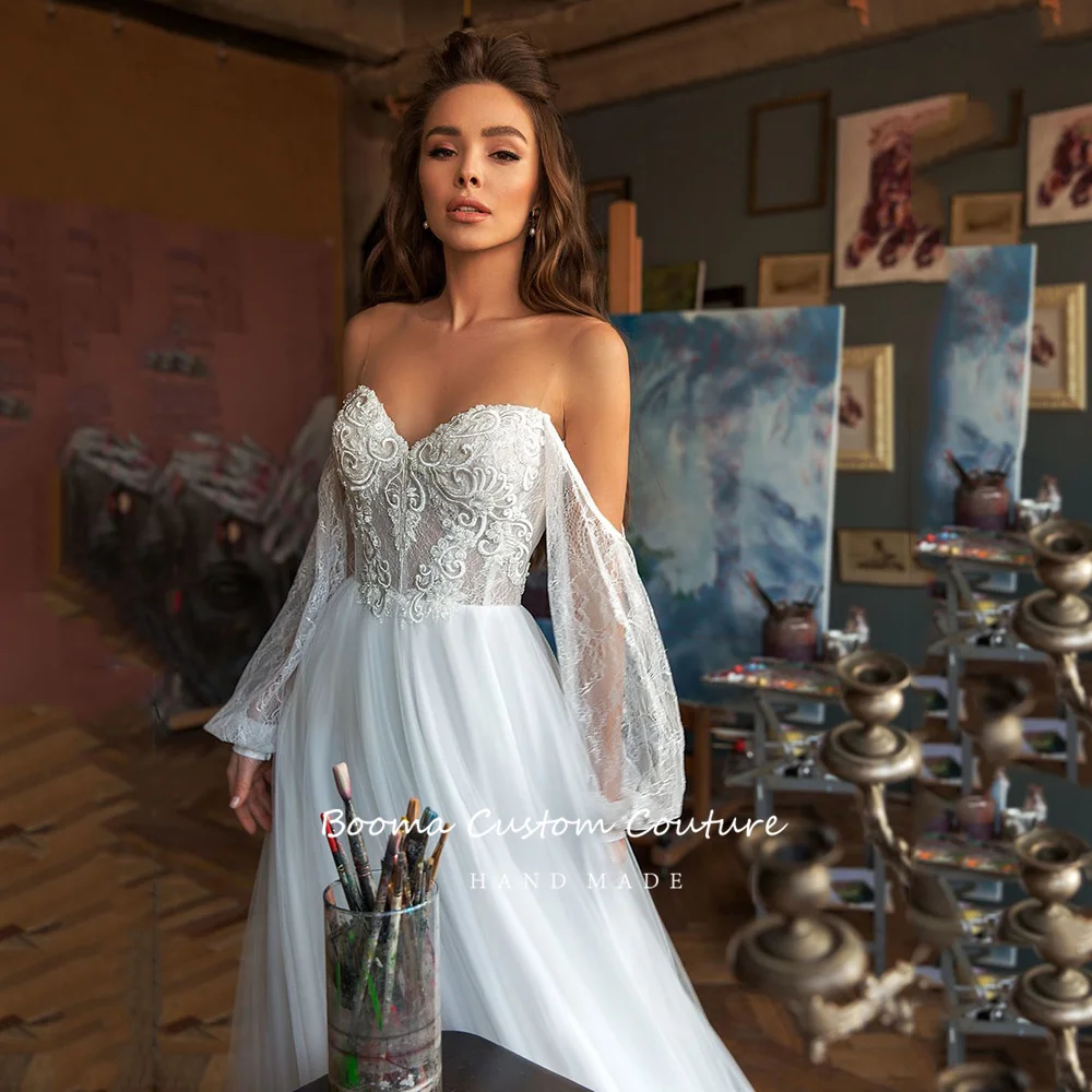 Свадебное платье принцессы цвета слоновой кости, с пышными рукавами, открытой спиной, трапециевидного силуэта, Аппликации Свадебные платья пуговиц