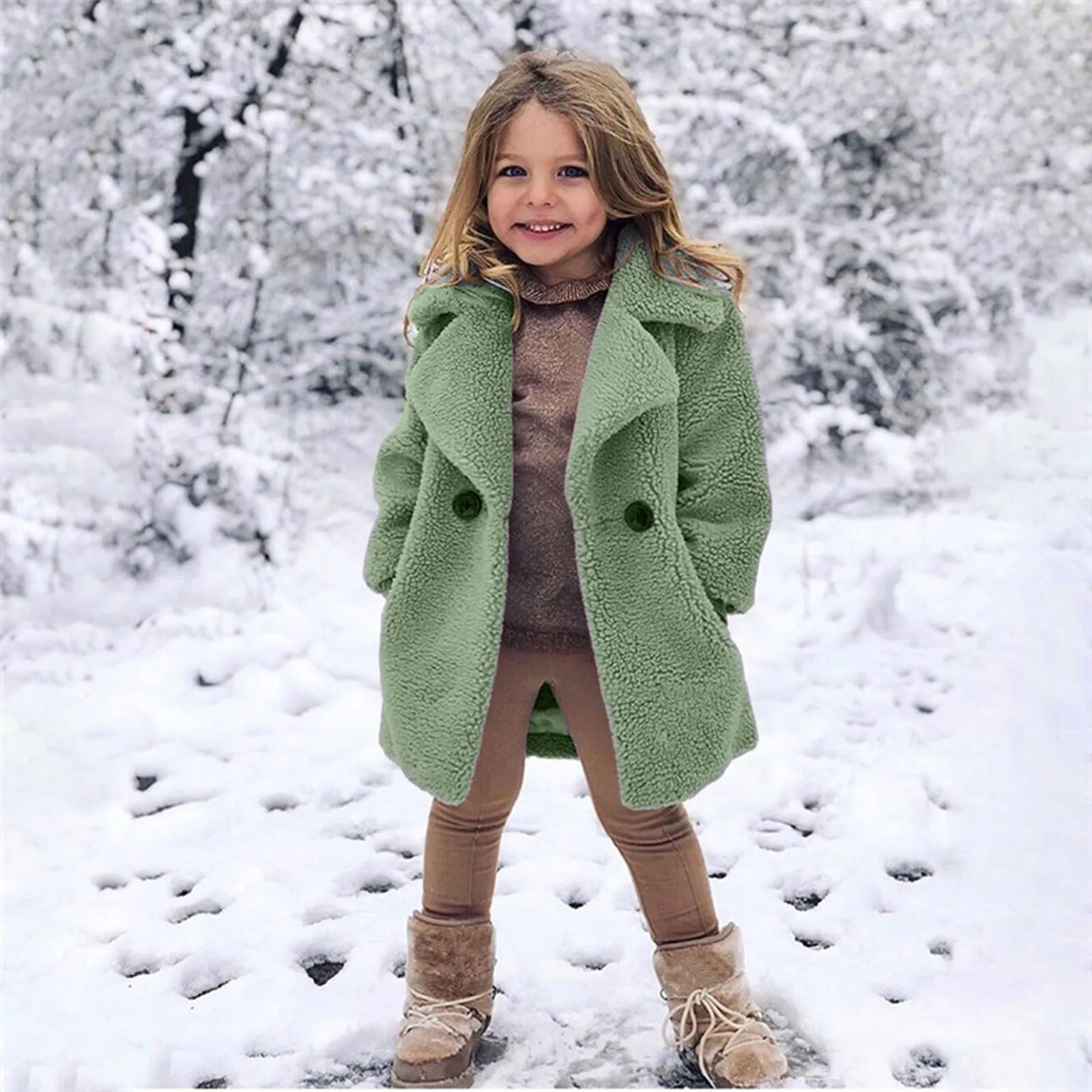 Модная одежда для маленьких детей, для маленьких девочек, ветрозащитная зимняя однотонная шерстяная куртка на пуговицах с длинным рукавом, утепленная теплая верхняя одежда # g4