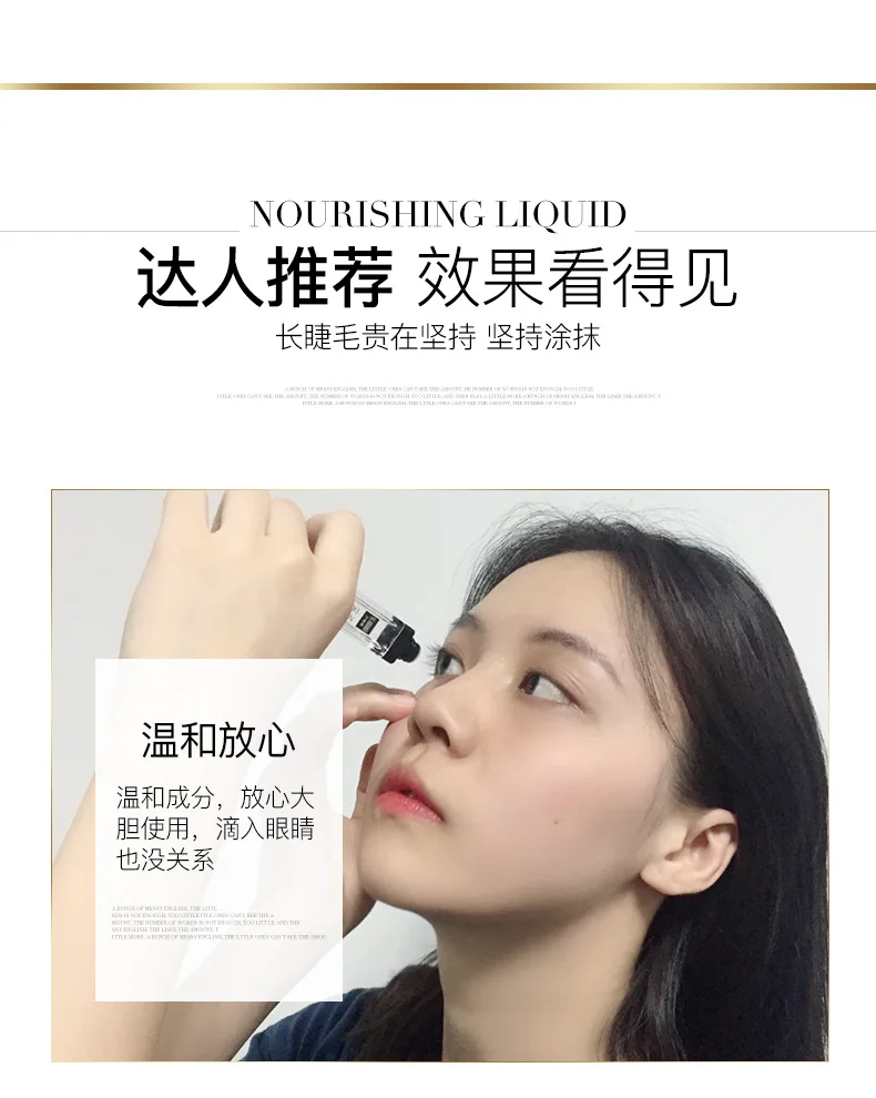 • Он может постоянно увлажнять волосы и избегать сухости и расщепления ресниц. Сначала он будет поглощен корнями ресниц и медленно укрепляет ресницы; Это сделает ресницы более здоровыми после использования. • Легендарный пептид для ресниц улучшает метаболизм клеток, эффективно способствует росту ресниц и росту волос. • Стимулирует человеческий Кератиновый ген, способствует росту ресниц и утолщению ресниц. • Предотвращает падение волос ресниц. Может видеть очевидный результат через один месяц.