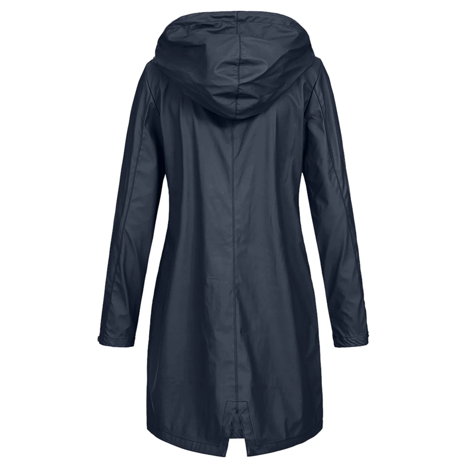 Женская однотонная дождевая куртка уличная толстовка с капюшоном водонепроницаемая ветрозащитная длинная куртка.