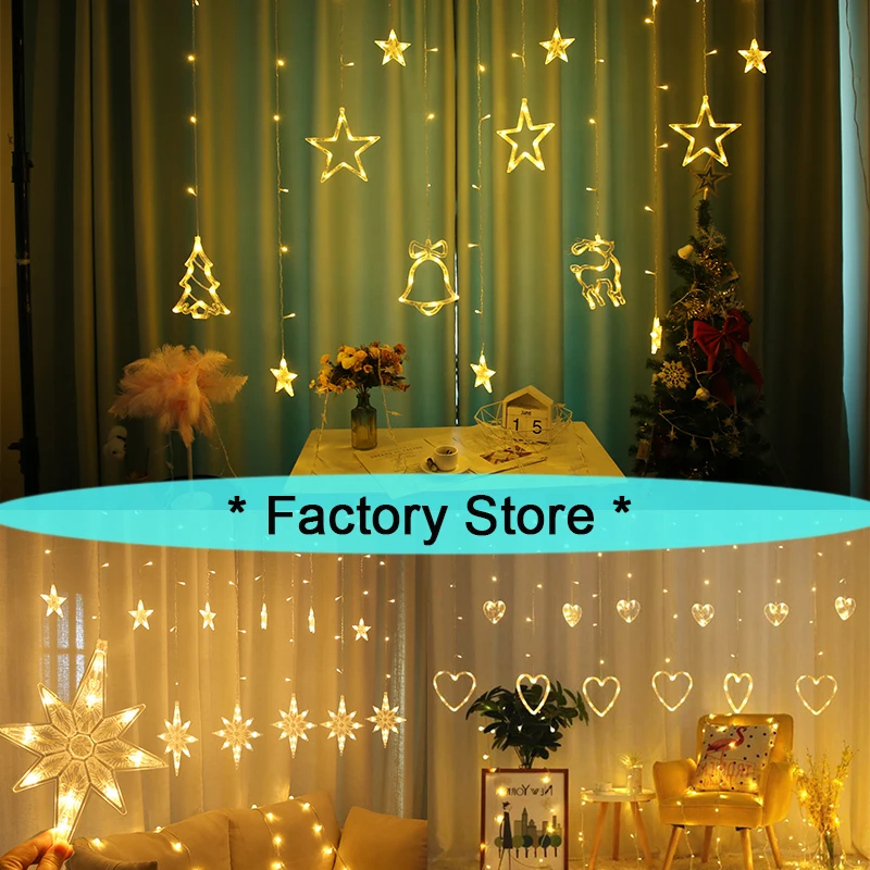 Рождественская сказочная гирлянда, гирлянсветильник, светодиодная гирлянда со звездами на окне, занавеска, внутреннее украшение для елки, Хэллоуин, свадьба