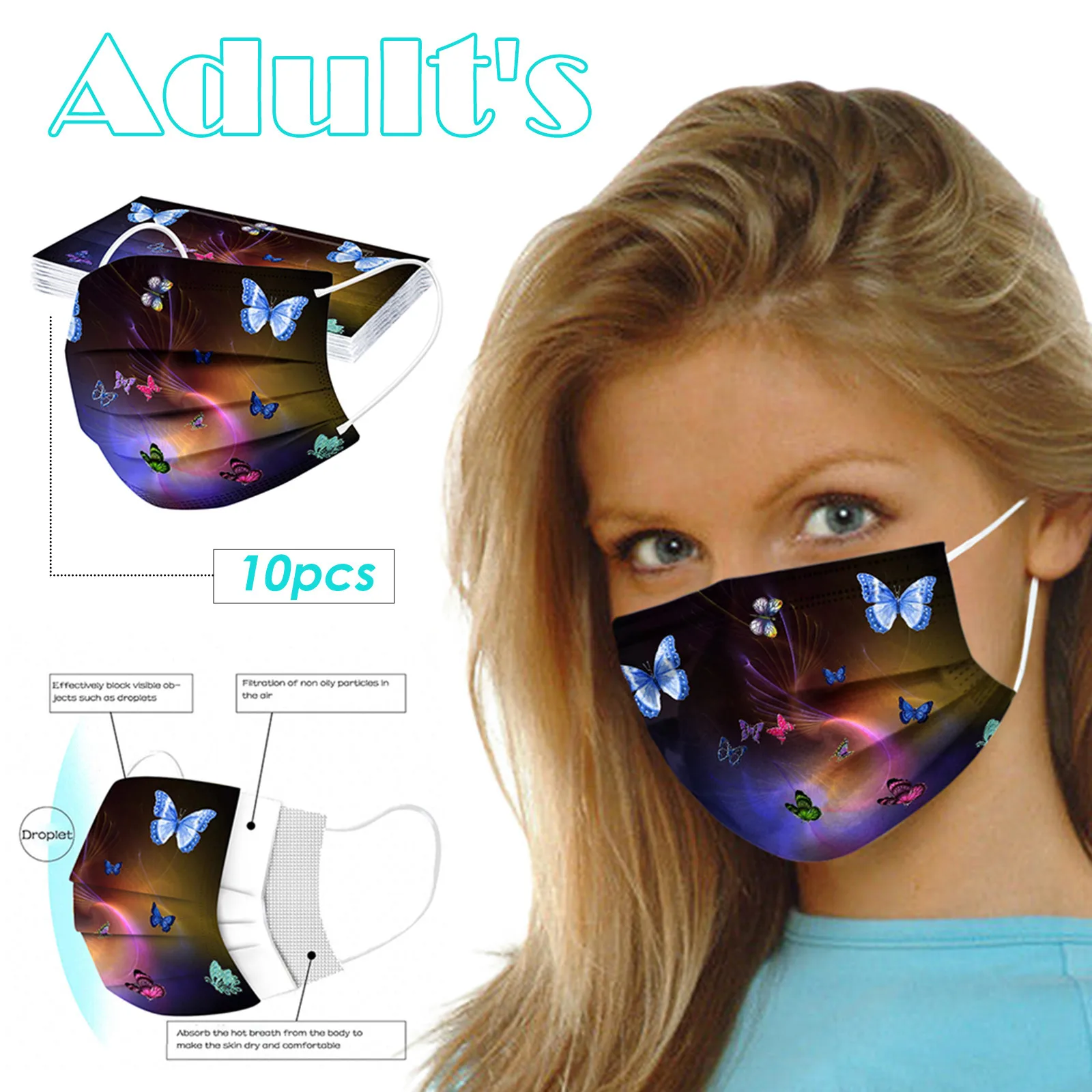 Маска одноразовая мультяшная с забавным принтом бабочки, 3-слойная, для косплея на Хэллоуин, Mondkapje, 50 шт.
