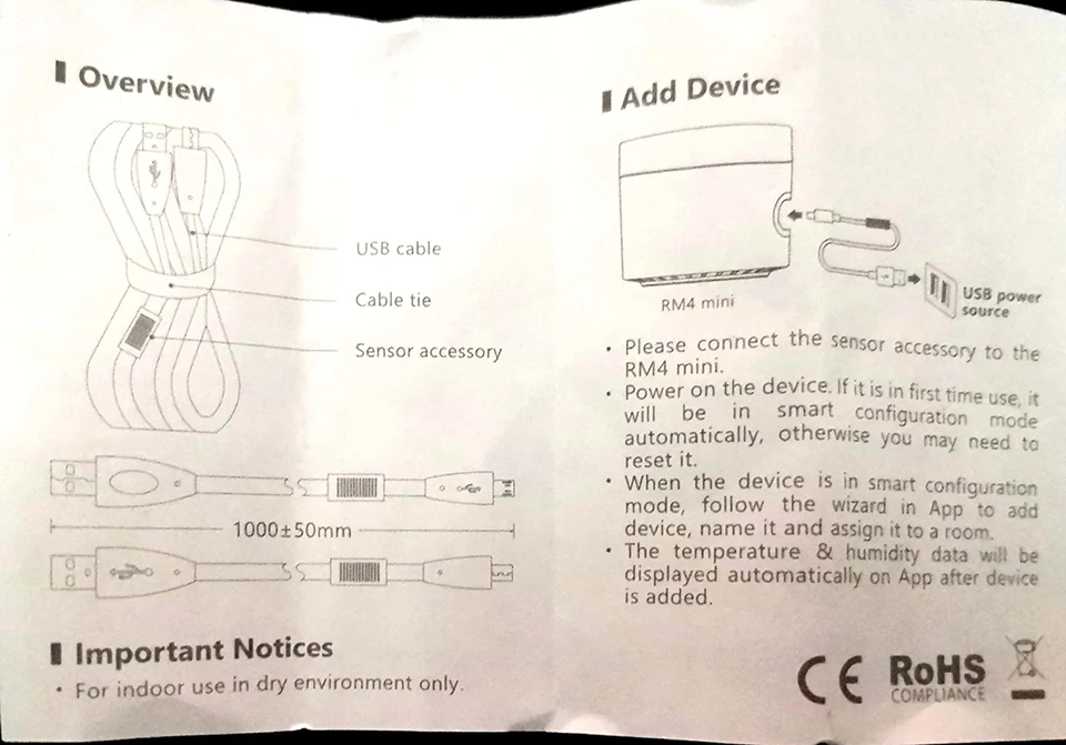 HTS2 Temp&Humidity Sensor cablesupport connect with RM4 Pro or RM4 mini