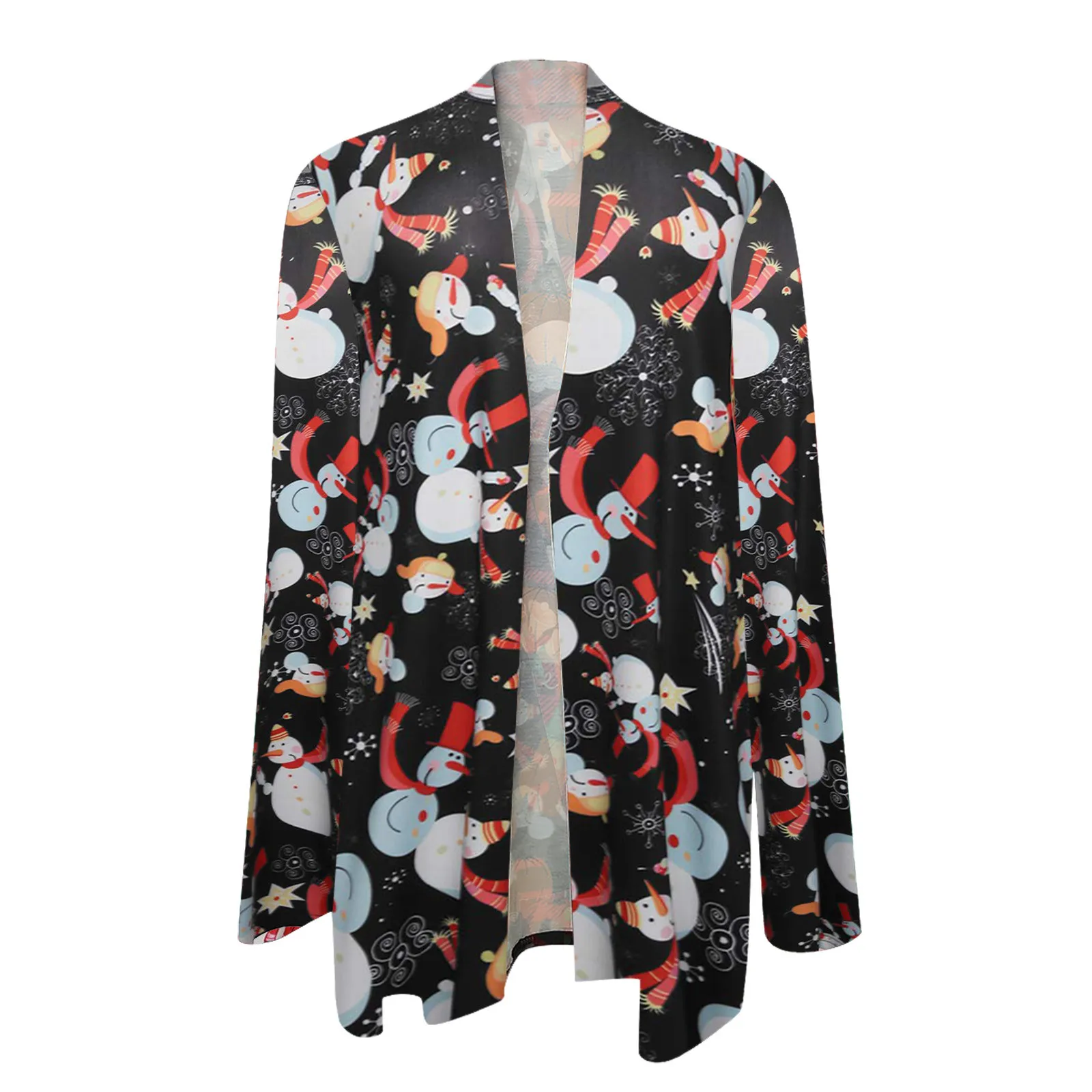Женское рождественское пальто с принтом снеговика, Свободный кардиган с длинным рукавом и цветочным подолом, пончо, накидки для осени, 40 #