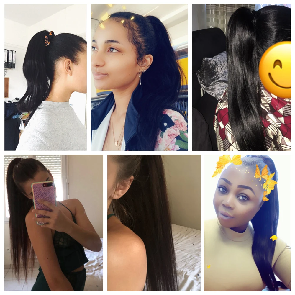 Прямой хвост Tinashe Beauty с эффектом омбре на шнурке, человеческие волосы, бразильский Реми, конский хвост для черных женщин с зажимом для наращивания