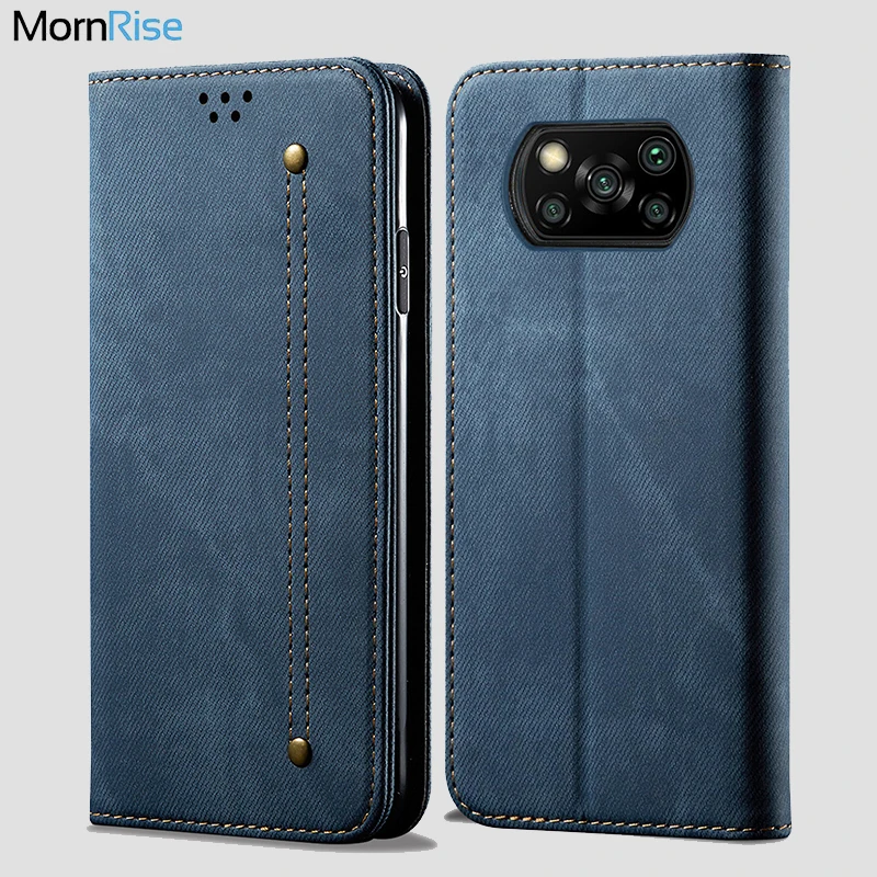 Чехол-Кошелек для Xiaomi MI Poco X3 NFC, Магнитный чехол-книжка с откидной крышкой для Pocophone X3 GT, джинсовые кожаные сумки, подставка, держатель для карт