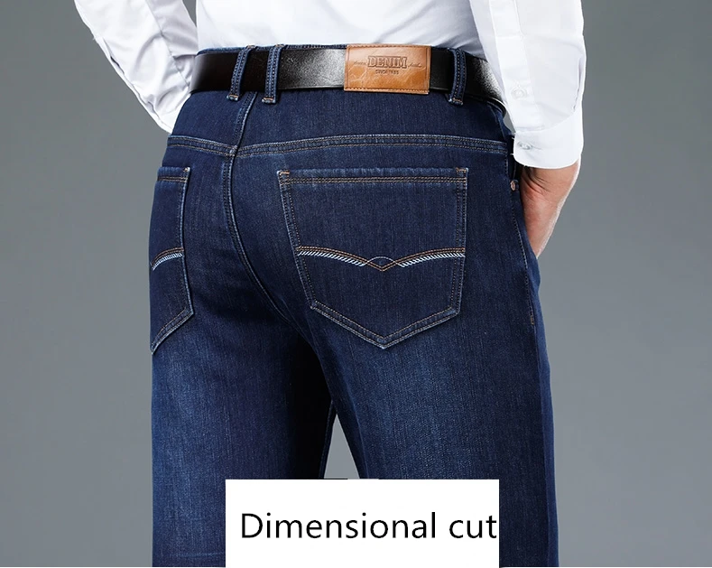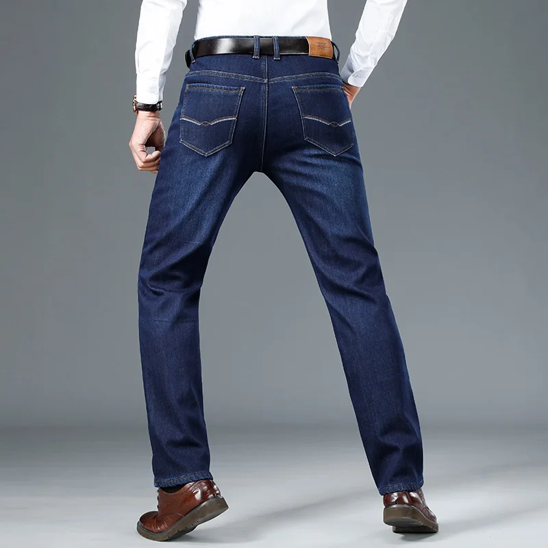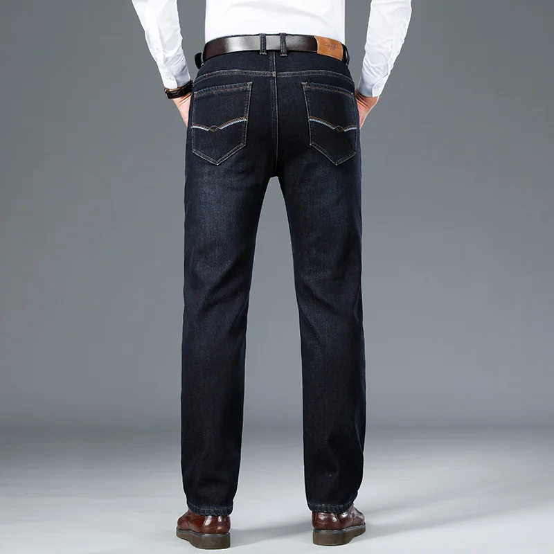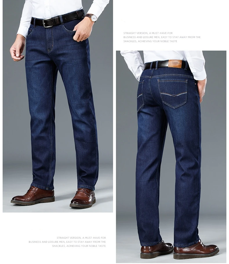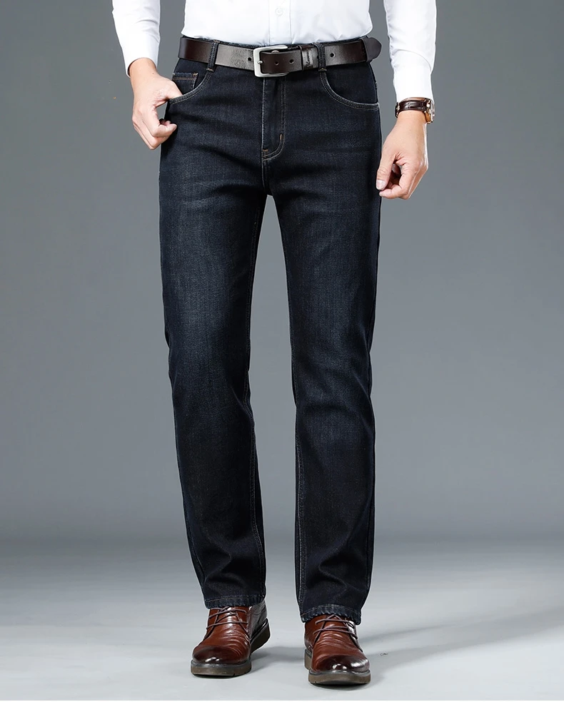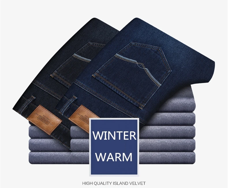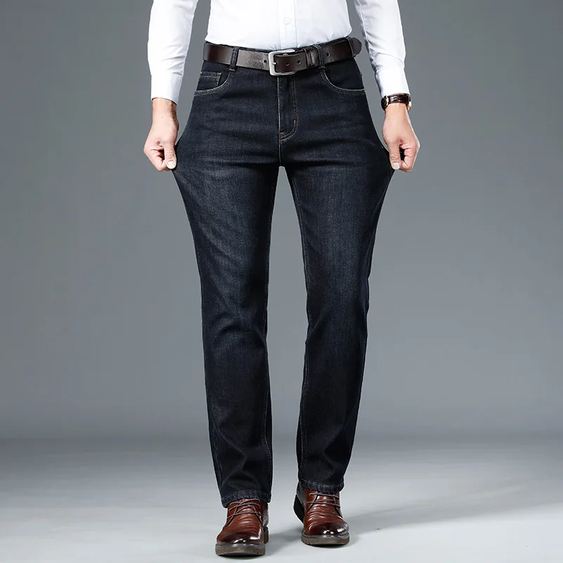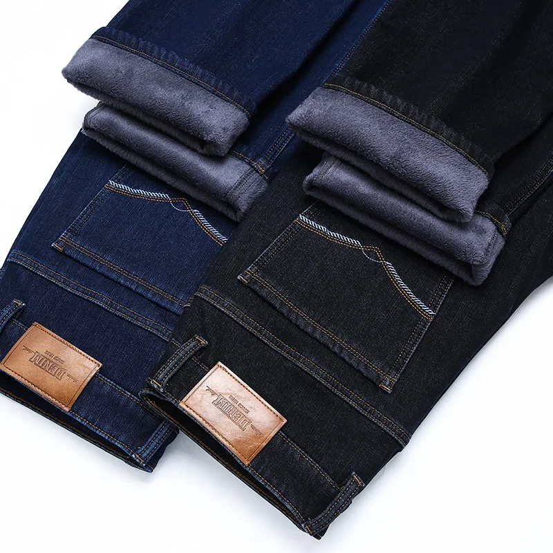 Джинсы мужские прямые стрейчевые, модные облегающие брюки из денима, деловой стиль, повседневные, с бархатной подкладкой, синие, черные, 42, на зиму