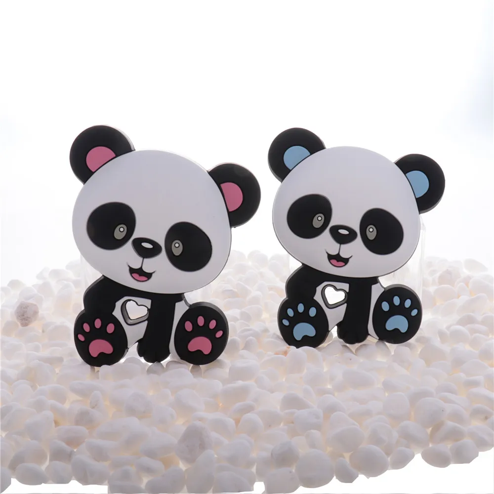 BPA бесплатно 5 шт Панда Силиконовые грызуны Детские Прорезыватели пищевого качества сенсорные игрушки DIY Новорожденные Прорезыватель соски клип цепь кулон животное