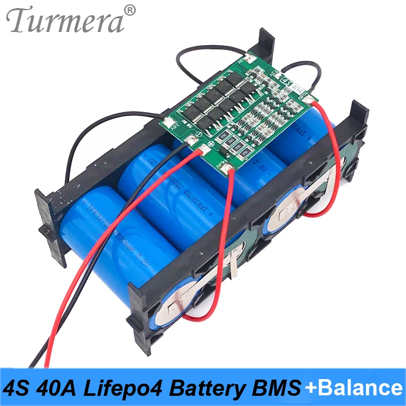 Аккумулятор Turmera 4S, 40A, 12,8 В, 14,4, 32650, 32700, Lifepo4, сбалансированный BMS для электролодки, бесперебойный источник питания, 12 В, автомобильный аккумулятор