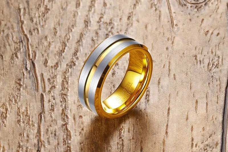 Золотые обручальные кольца 8 мм из карбида вольфрама для мужчин и женщин, модные ювелирные изделия со скошенными зубцами, кольцо, Подарок на годовщину брака
