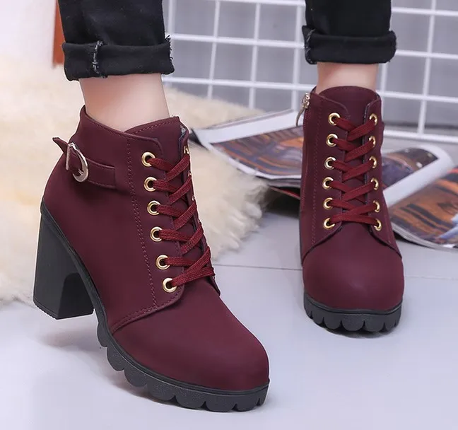 Женские зимние ботильоны Martin на толстом высоком каблуке, на молнии, со шнуровкой, Нескользящие, на платформе, теплые женские туфли-лодочки, ботинки для женщин