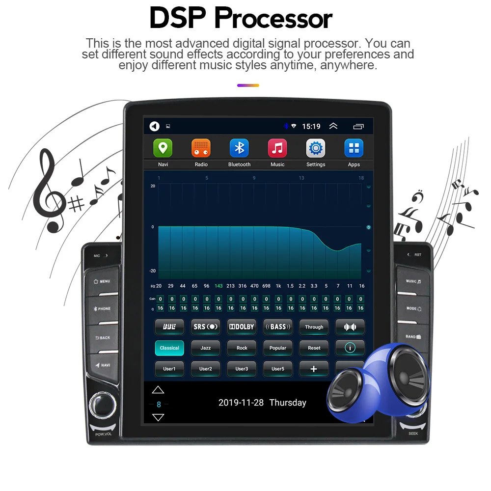 DSP звуковой процессор более точное управление звуком Сильная способность декодирования, чистое качество звука с идеальными деталями, делают басы богатыми и полными, alto прозрачными и высокими четкими. Более точная мощность задержки звука улучшает качество звука для вашего автомобиля