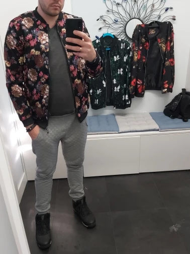 Мужская приталенная куртка-бомбер с цветочным принтом и длинным рукавом