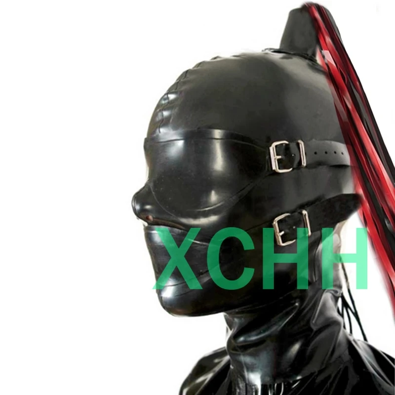 Латексные капюшоны ручной работы с экстрактом, индивидуальная Фетиш-маска героя, капюшон, головной убор с петлями, Обложка для рта, косплей-костюм