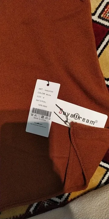 Свитер действительно хороший, теплый и красивый, изготовлен из 100% шерсти. Ткань не тонкая и не толстая. К сожалению, свитер был поврежден. Продавец быстро решает проблему, поэтому не стесняйтесь обращаться к ней, не открывая спор. Мне очень нравится этот магазин, настоятельно рекомендую!