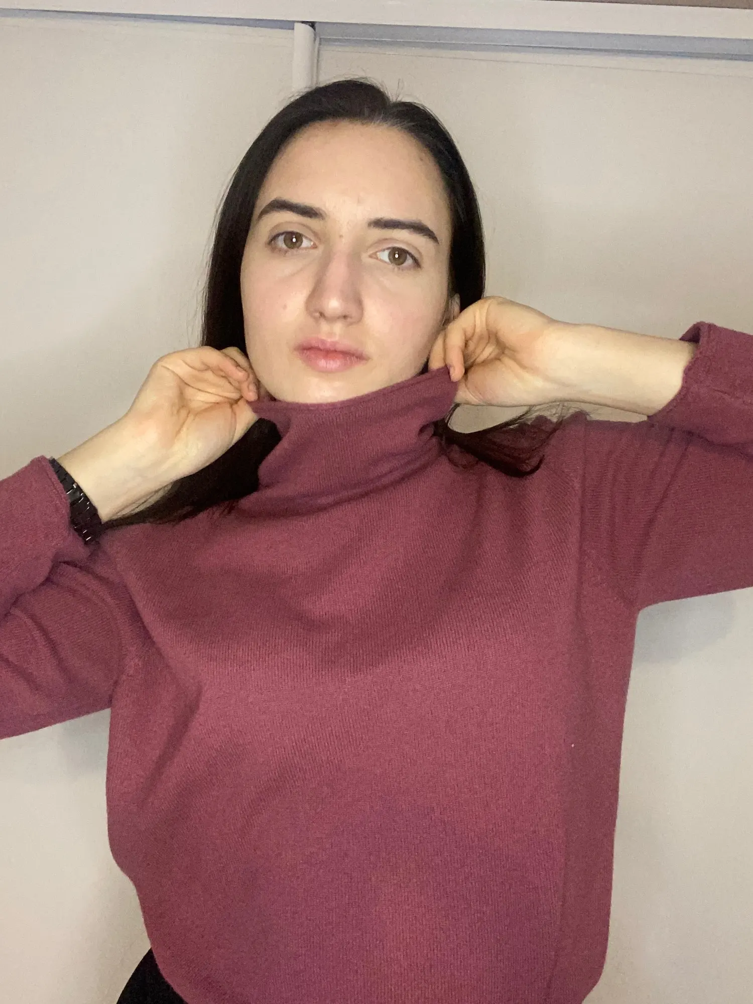 Джемпер чудесный! Но цвет... это совсем не то, что написано продавцом и не то, что я ожидала. Он отличается от фото. Далек от бургунди и с темно-красным рядом не стоит. Он теплее сливы и чуть холоднее гнилой вишни. Описала, как могла. Восприятие цвета очень индивидуально. Если бы был бургунди, марсала или темно-красный - это было бы для меня счастье!