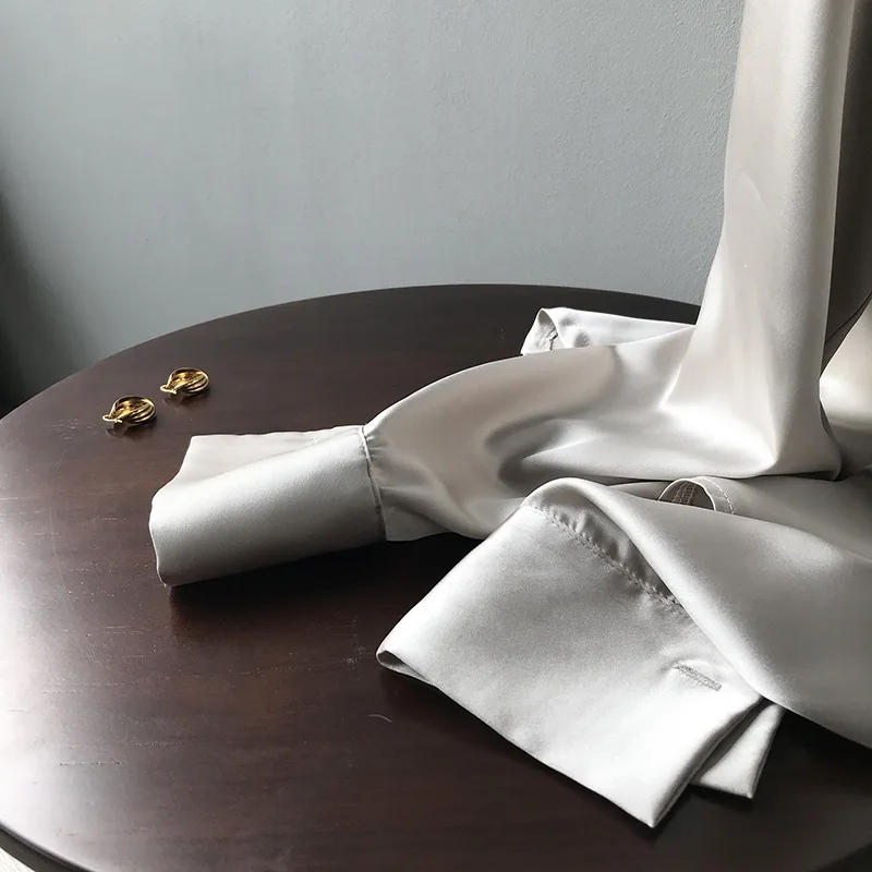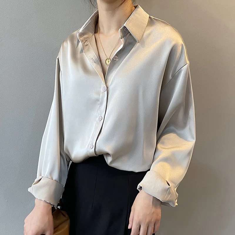 Осенняя модная атласная шелковая рубашка на пуговицах, винтажная блузка для женщин, белая женская Свободная уличная рубашка с длинными рукавами