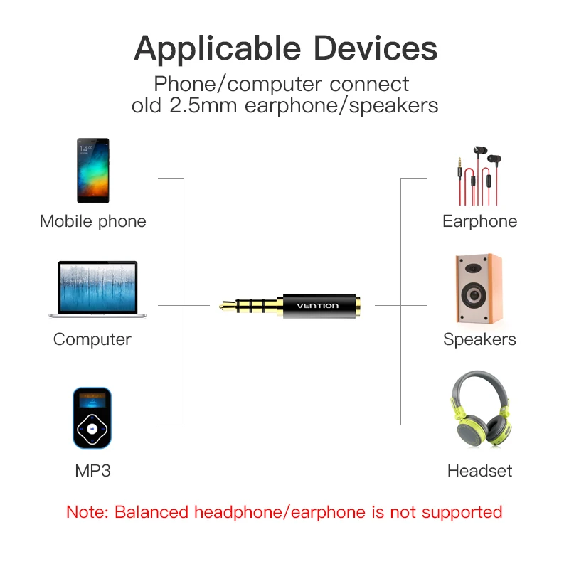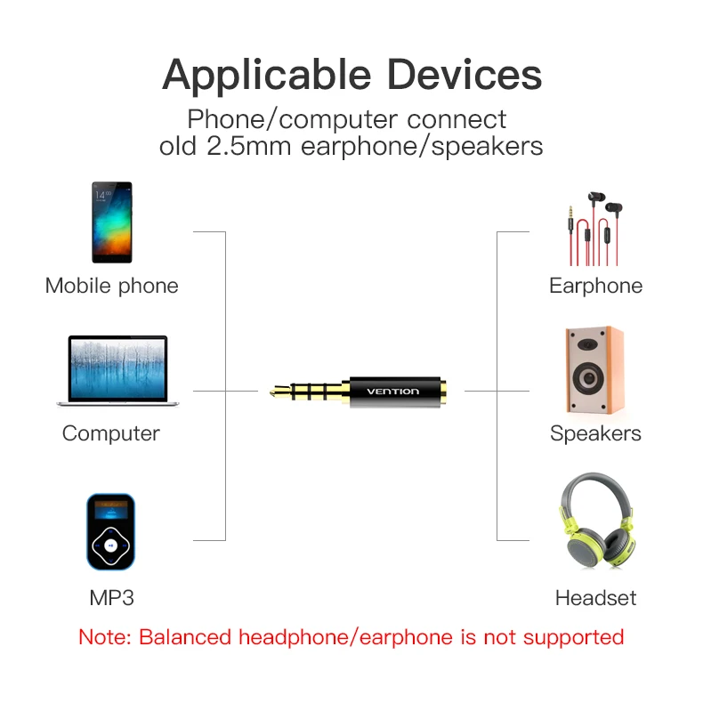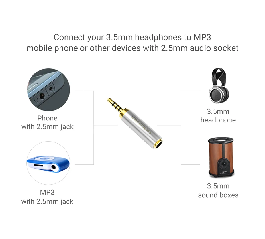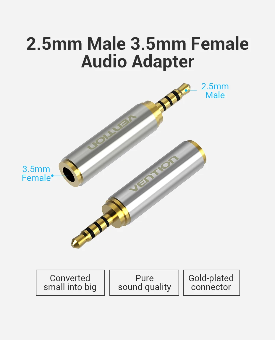 Аудиоадаптер Vention с разъемом 3,5 мм на 2,5 мм, переходник со штекера 2,5 мм на гнездо 3,5 мм для Aux кабеля динамика, разъем для наушников 3,5