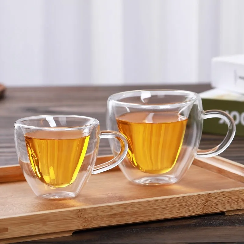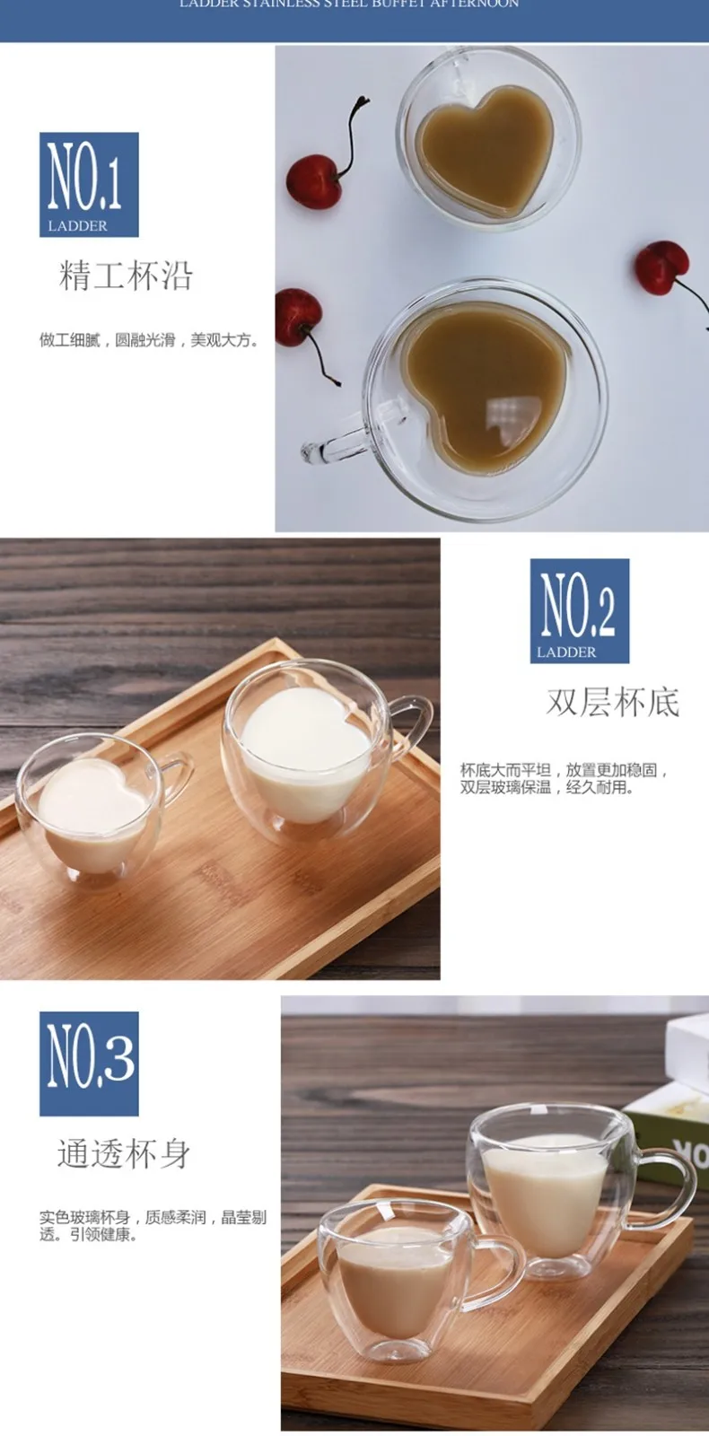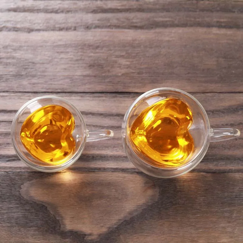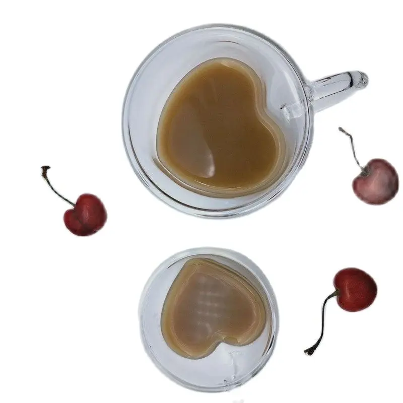 Бокалы Для Вина В Форме Сердца, чашка для виски, водки, чашки для кофе, сока, воды, чашки для чая, креативная кружка, стеклянные кружки с двойным дном, оптовая продажа