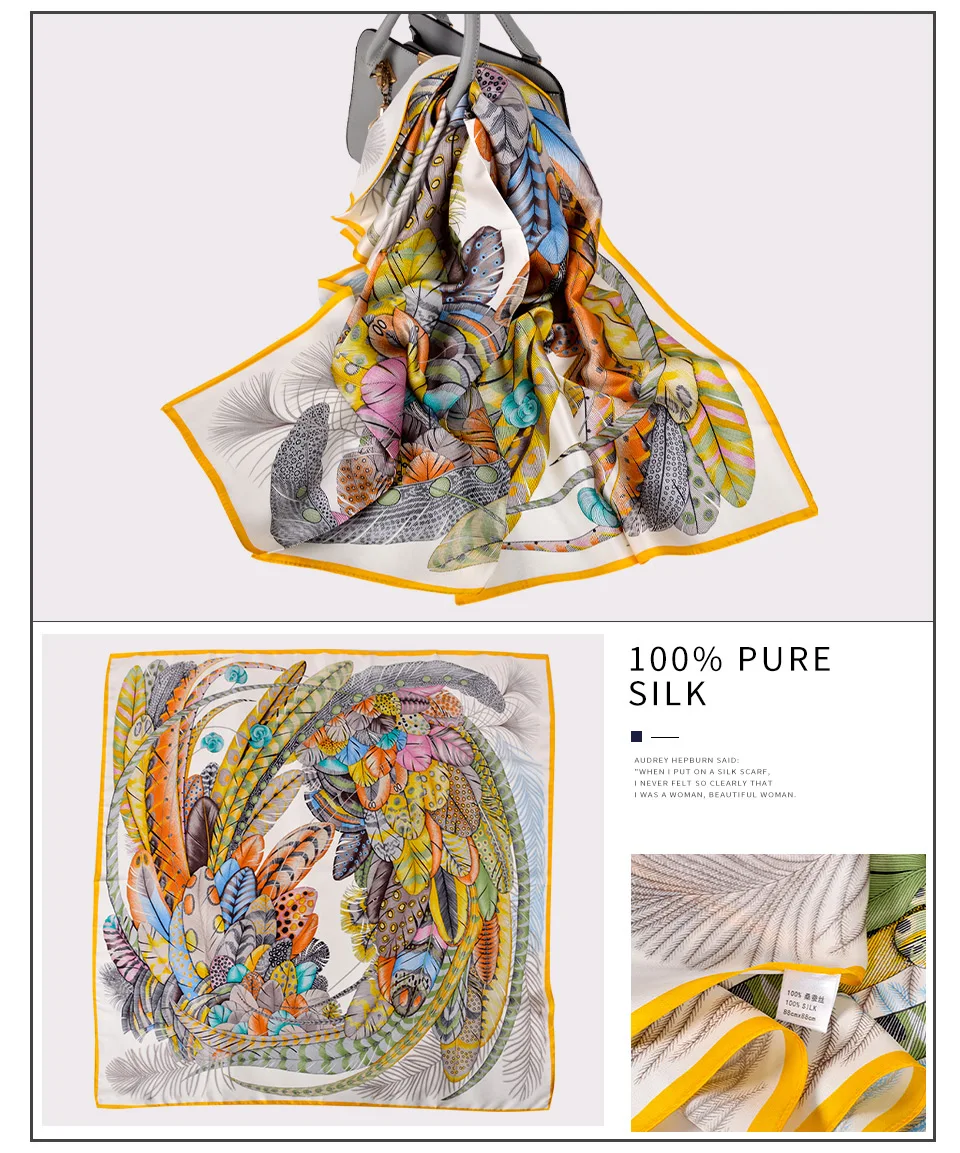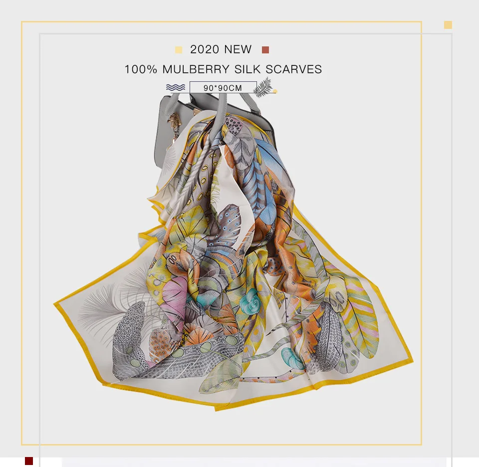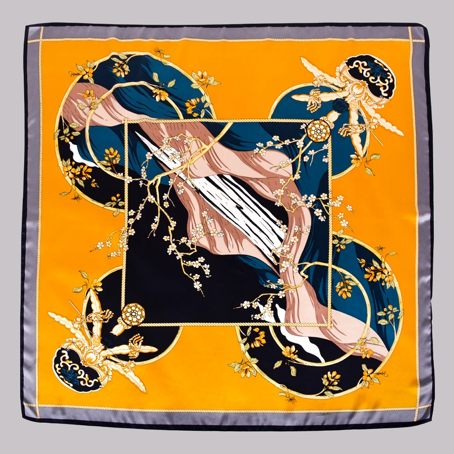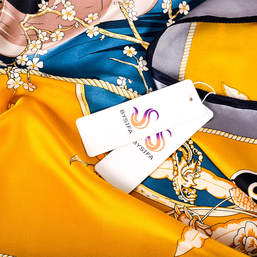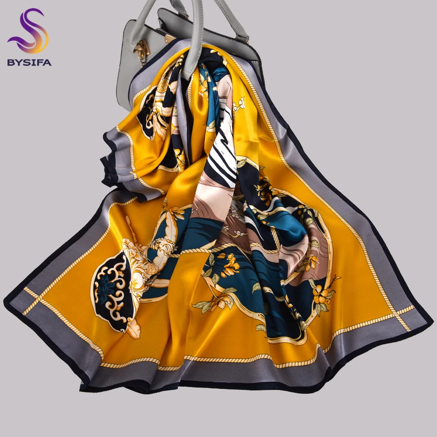 Квадратные шарфы BYSIFA из чистого шелка, серого и желтого цветов, в китайском стиле, 100% шелковый шарф, шаль, зимние шарфы, хиджабы
