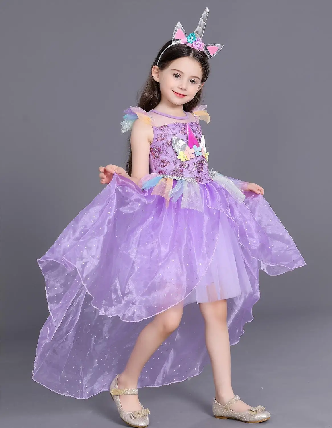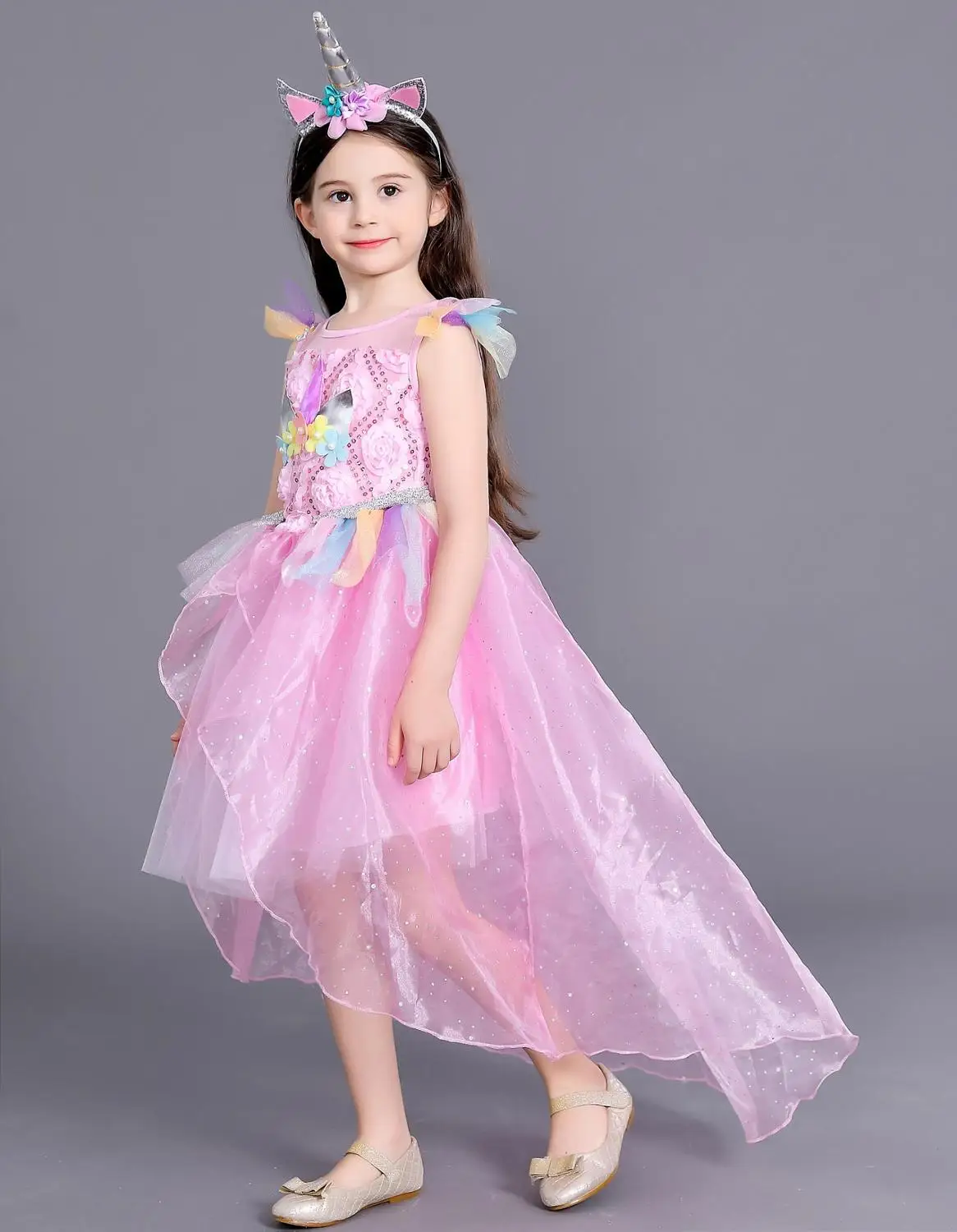 Платье принцессы с единорогом для девочек, длинное Радужное бальное...